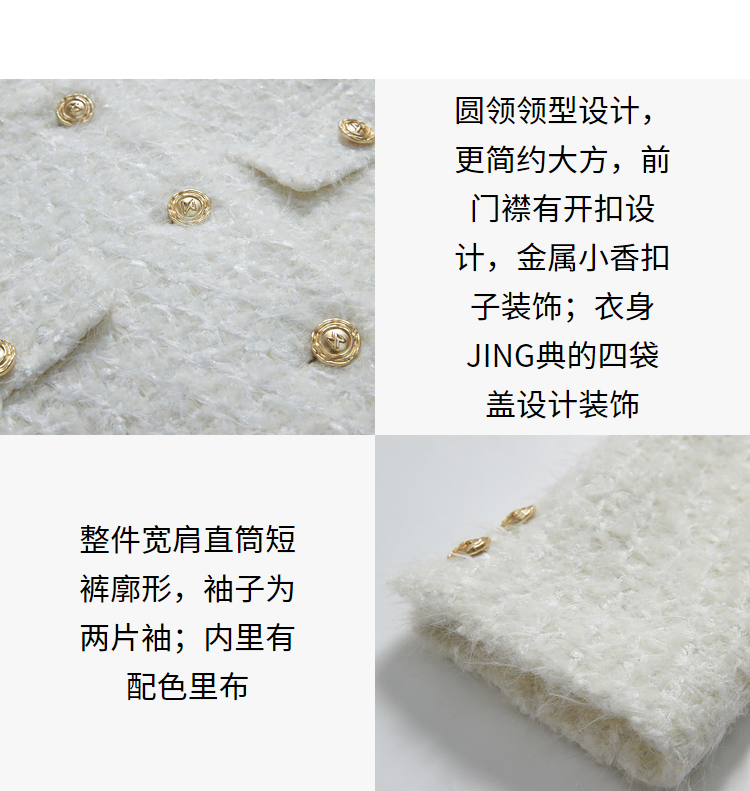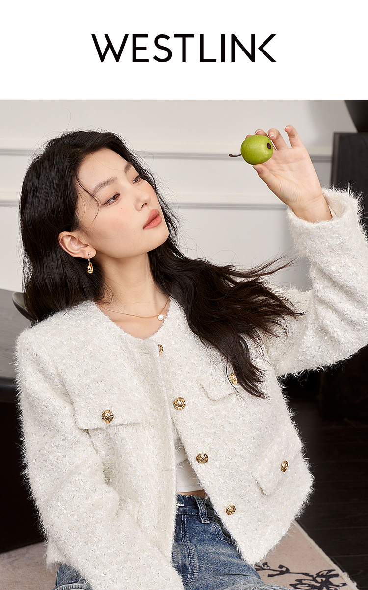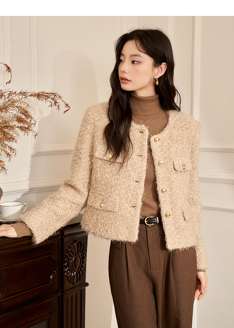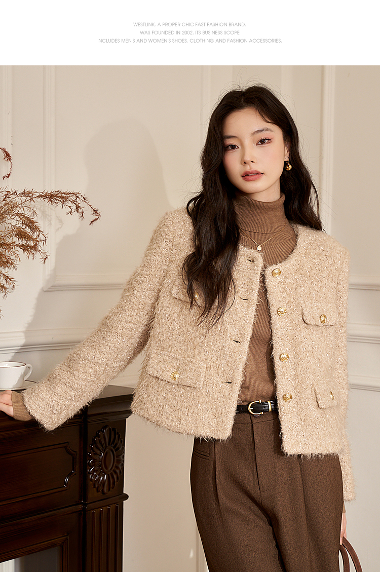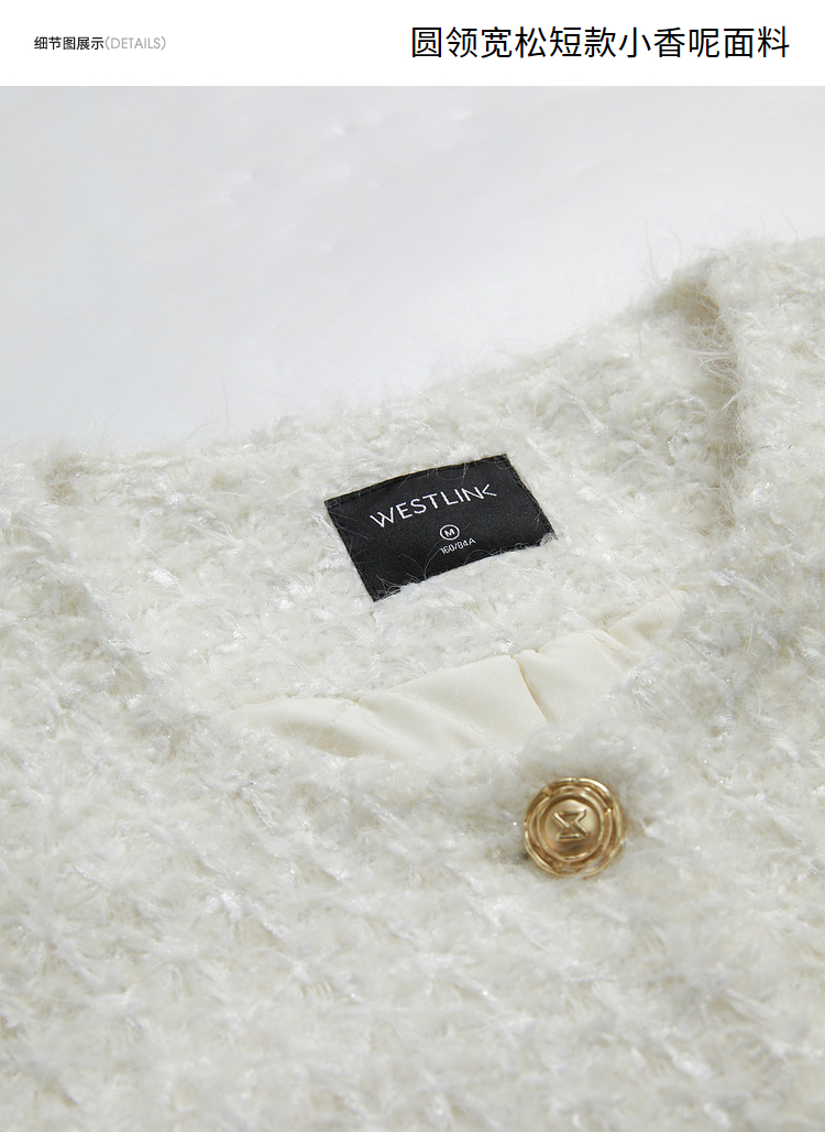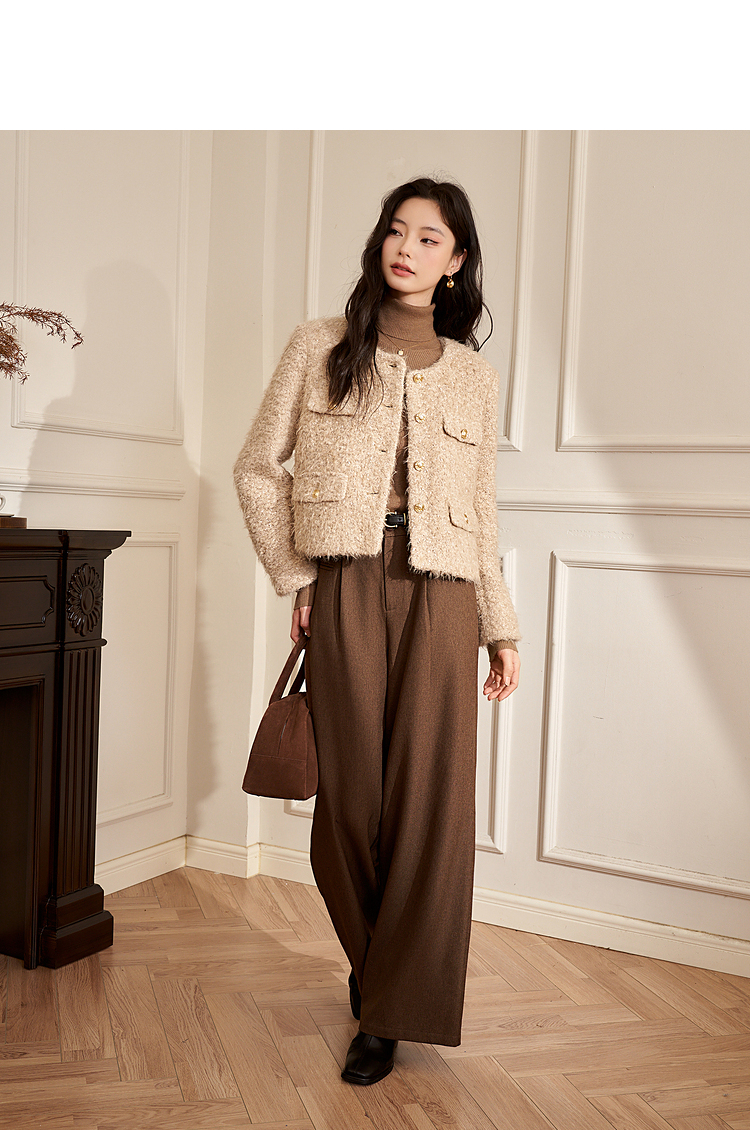 西遇小香风毛呢外套套装女2023秋冬新款圆领杏色夹克美拉德直筒裤12238780/12238666/12238781