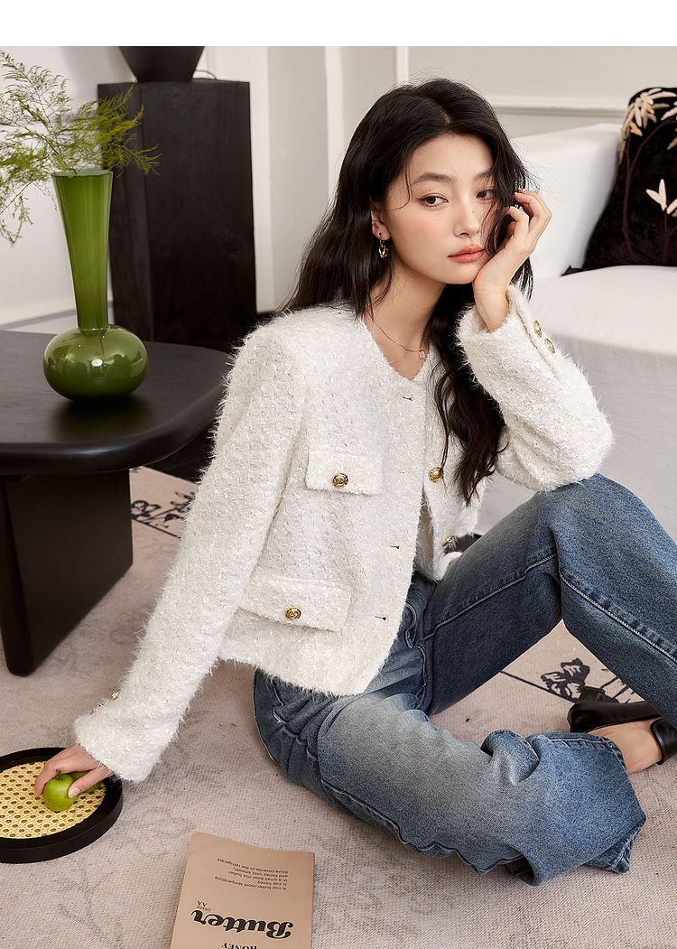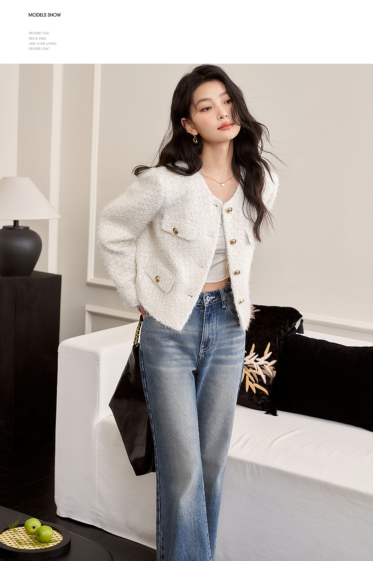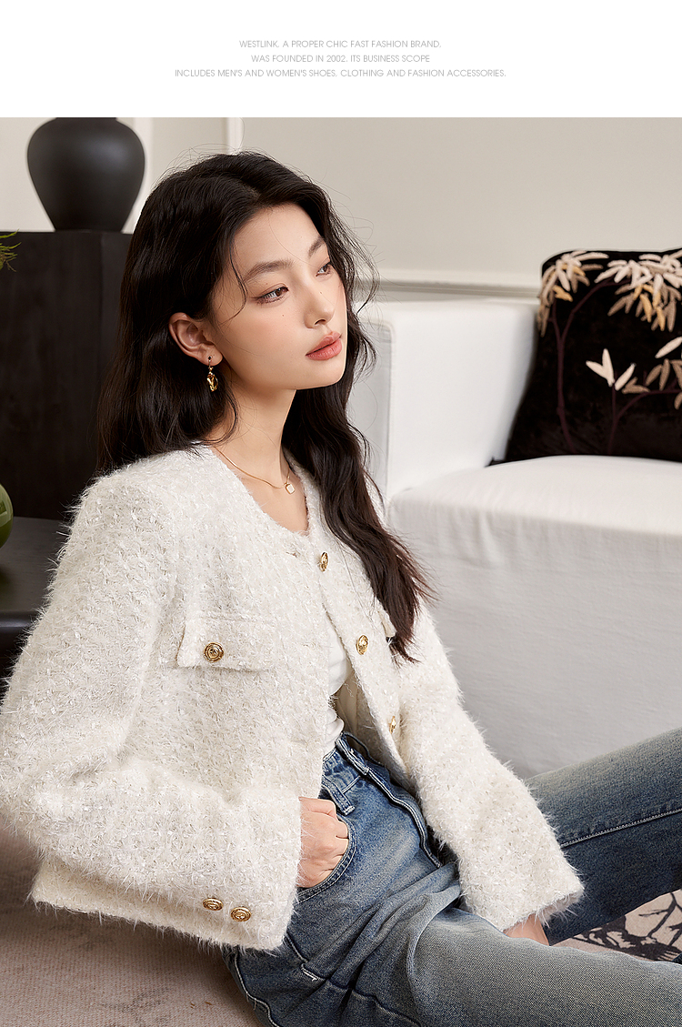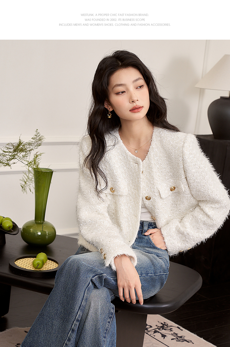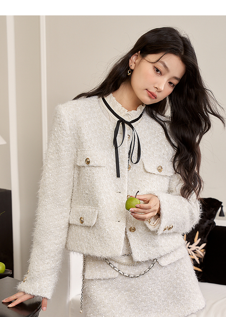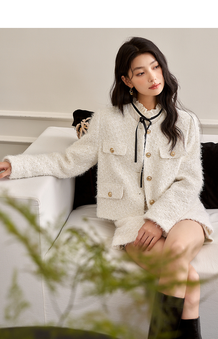 西遇小香风毛呢外套套装女2023秋冬新款圆领杏色夹克美拉德直筒裤12238780/12238666/12238781