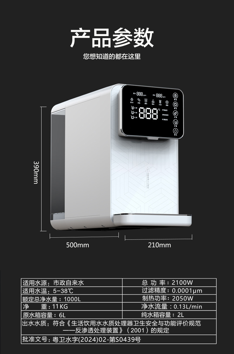 台式净水器 家用免安装RO反渗透过滤纯水机 净化器加热一体机 净饮机