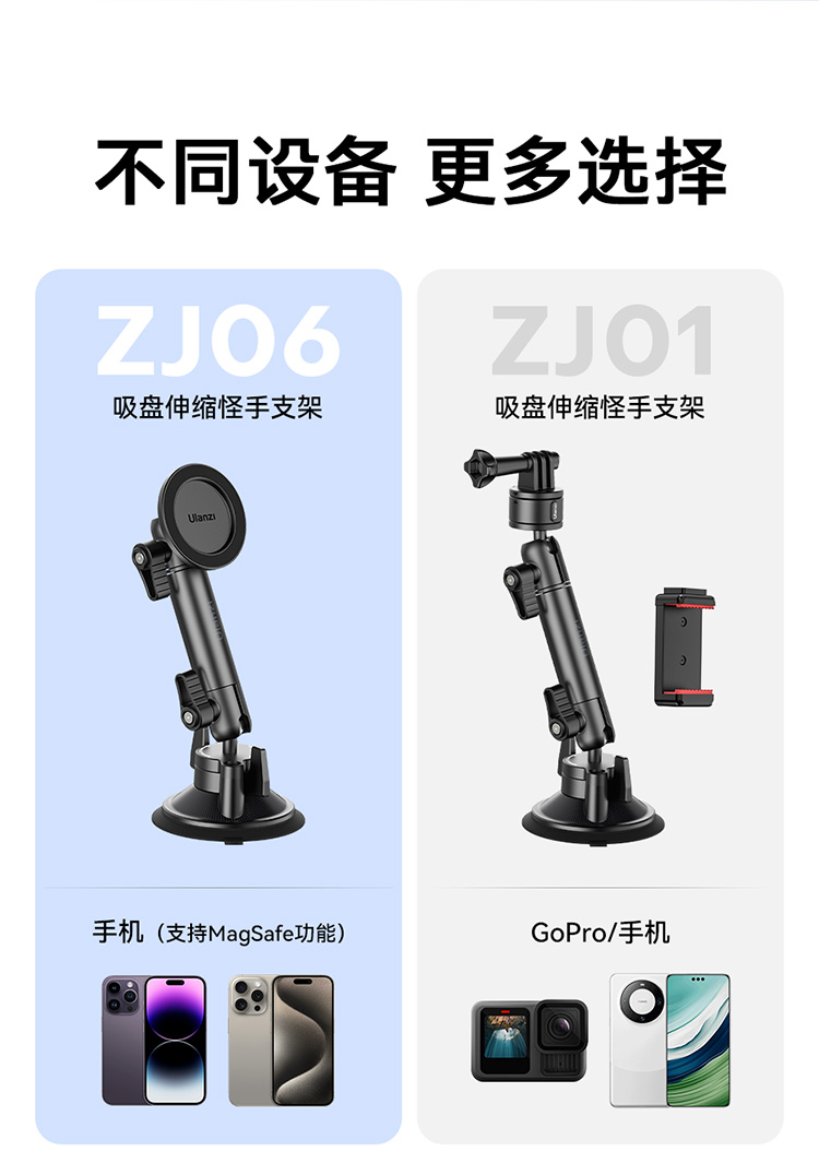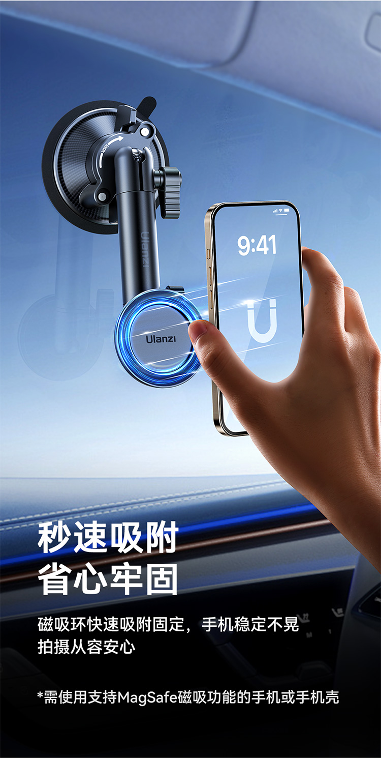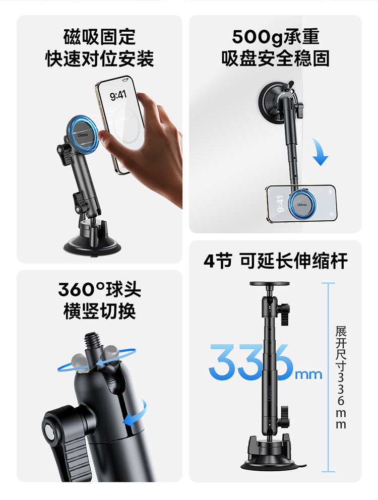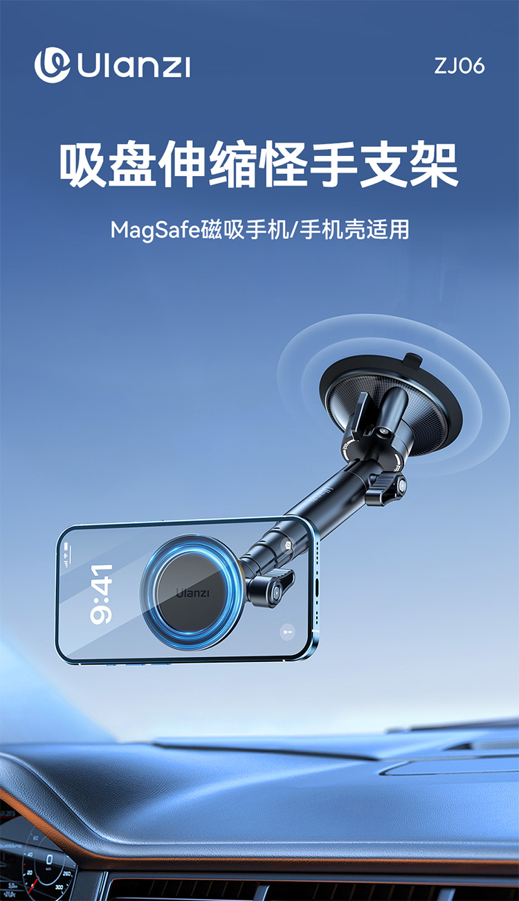 Ulanzi优篮子ZJ06磁吸吸盘怪手伸缩支架车载拍摄支架手机万向魔术手magsafe磁吸吸盘支架适用于苹果iphone16