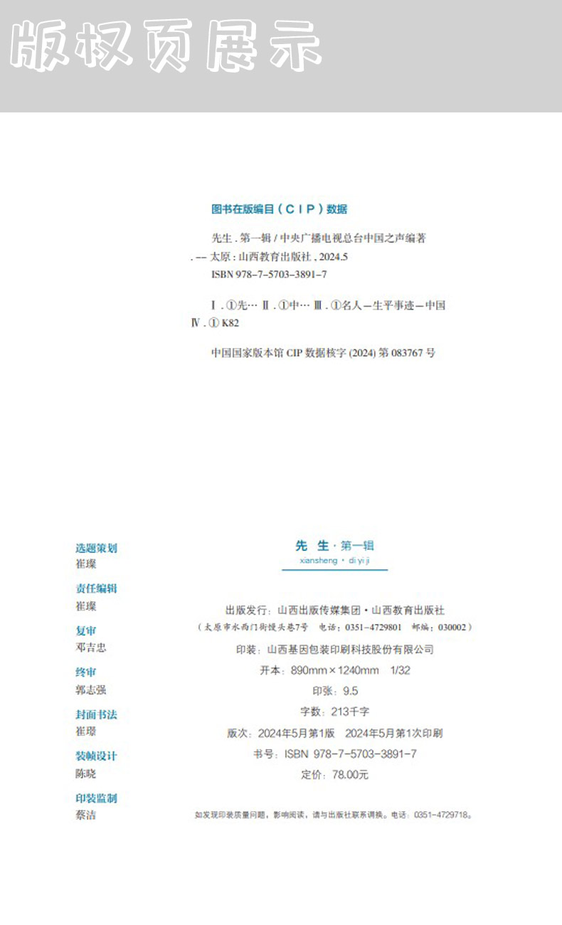 正版 先生第一辑 名人生平事迹 中央广播电视总台中国之声编著 山西教育出版社出版