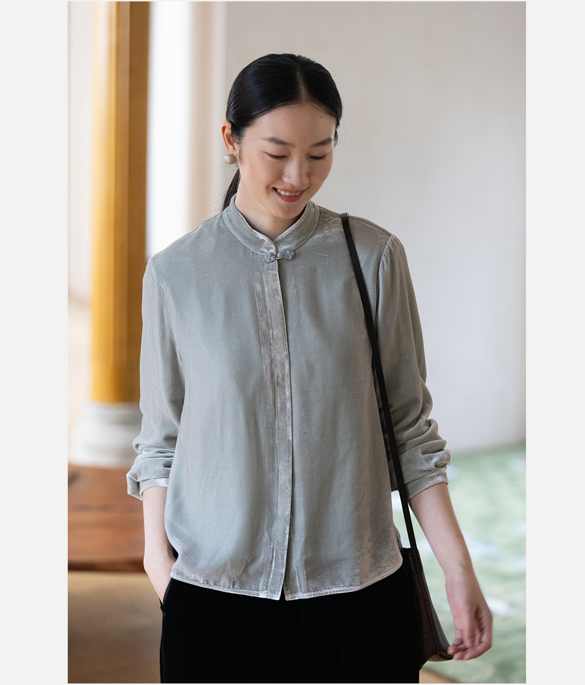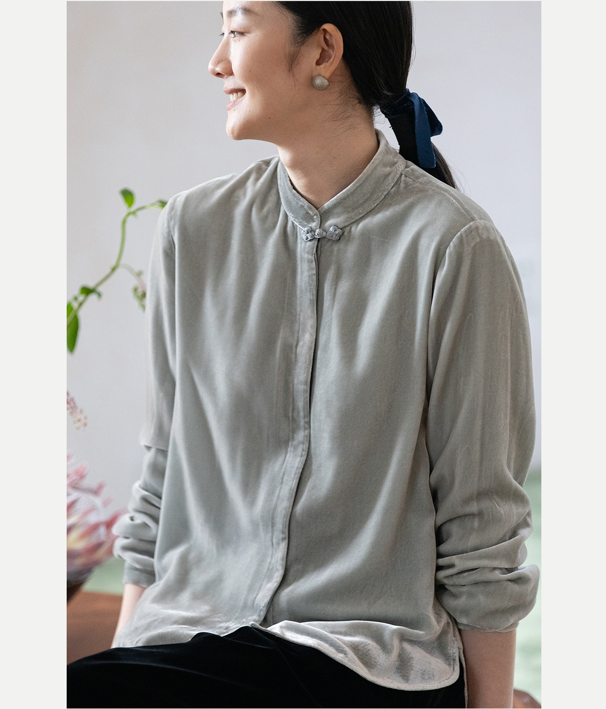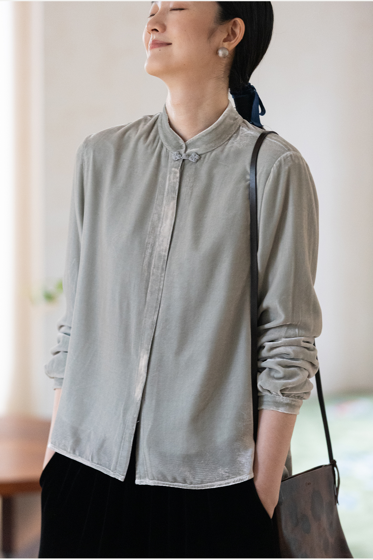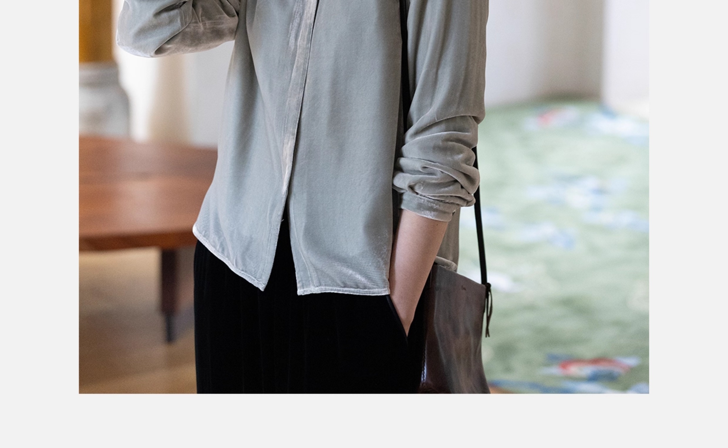 牧衣游原创 丝绒衬衫女新款高级感简约纯色复古通勤百搭衬衣 从轻