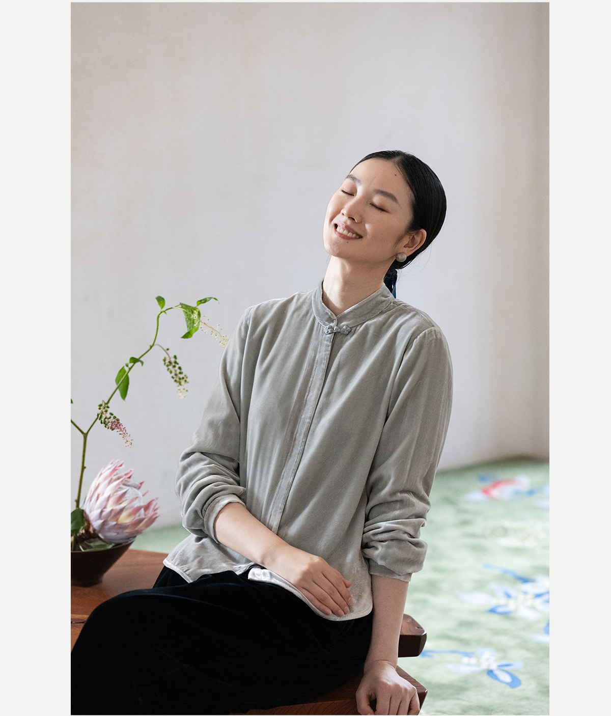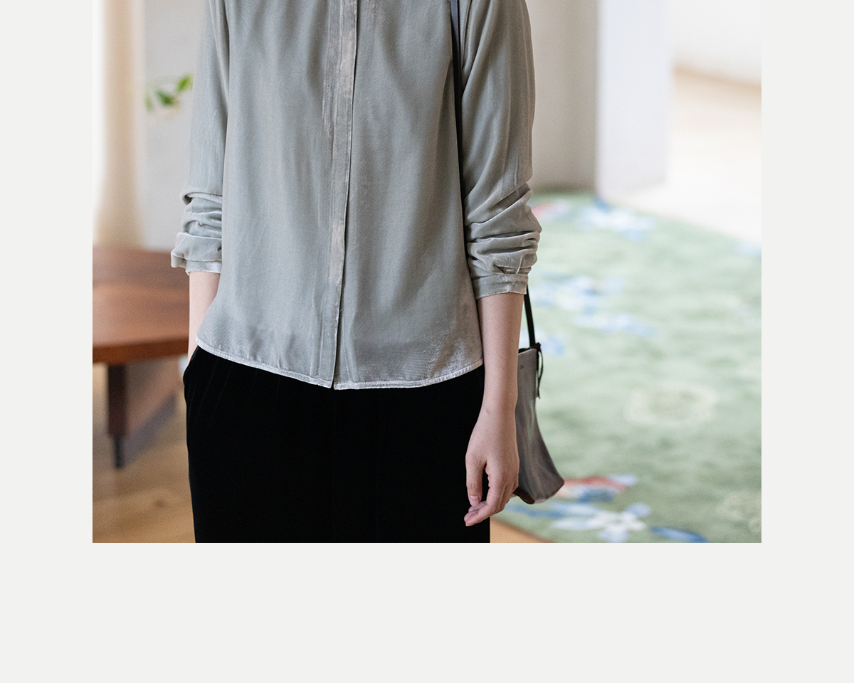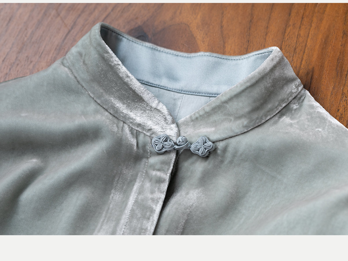 牧衣游原创 丝绒衬衫女新款高级感简约纯色复古通勤百搭衬衣 从轻