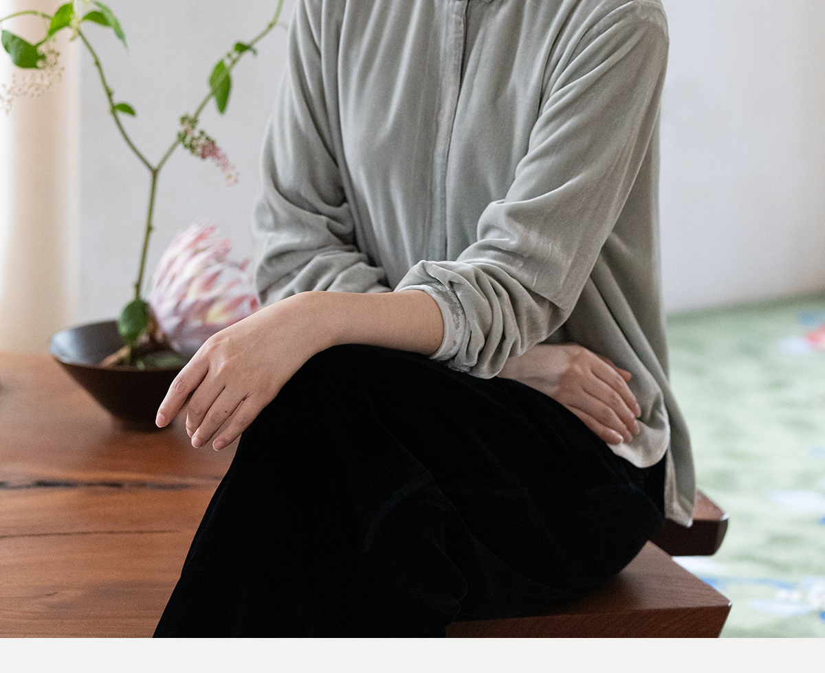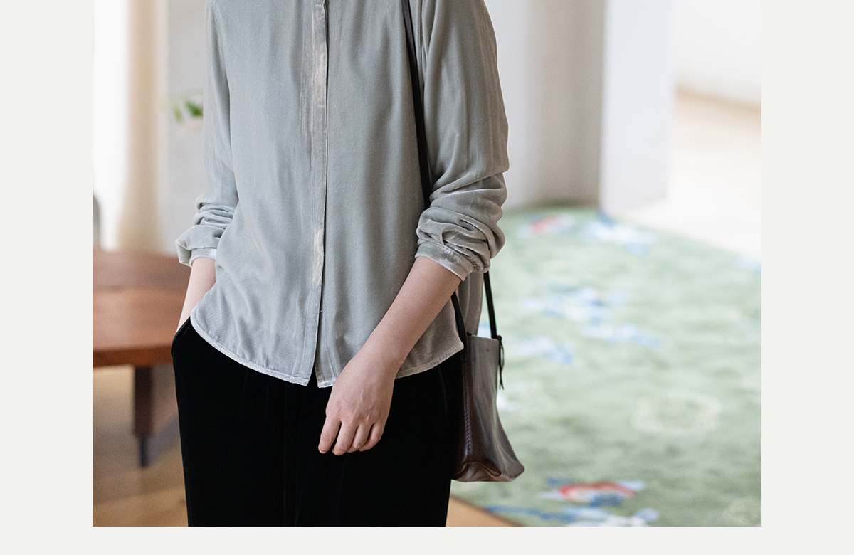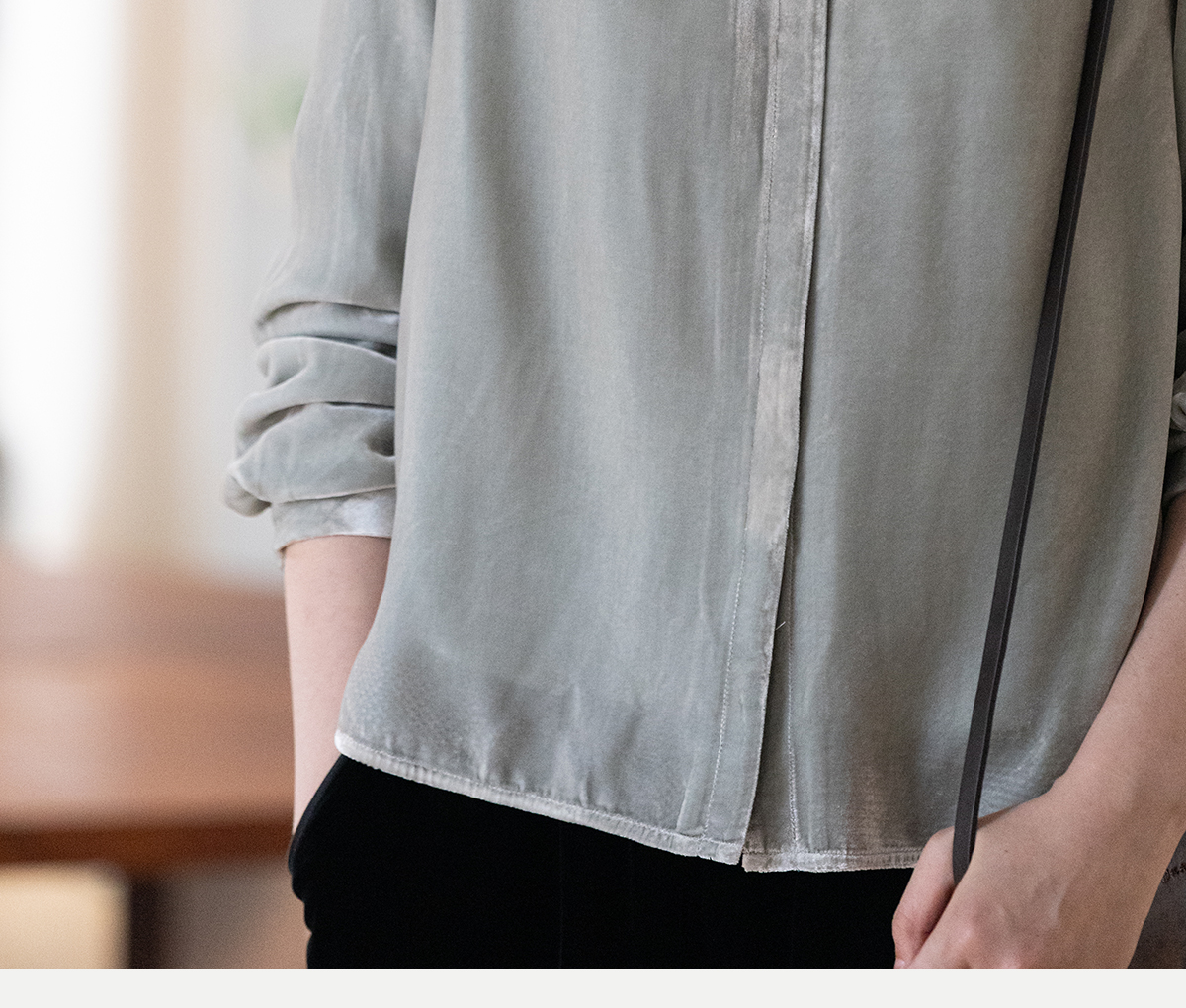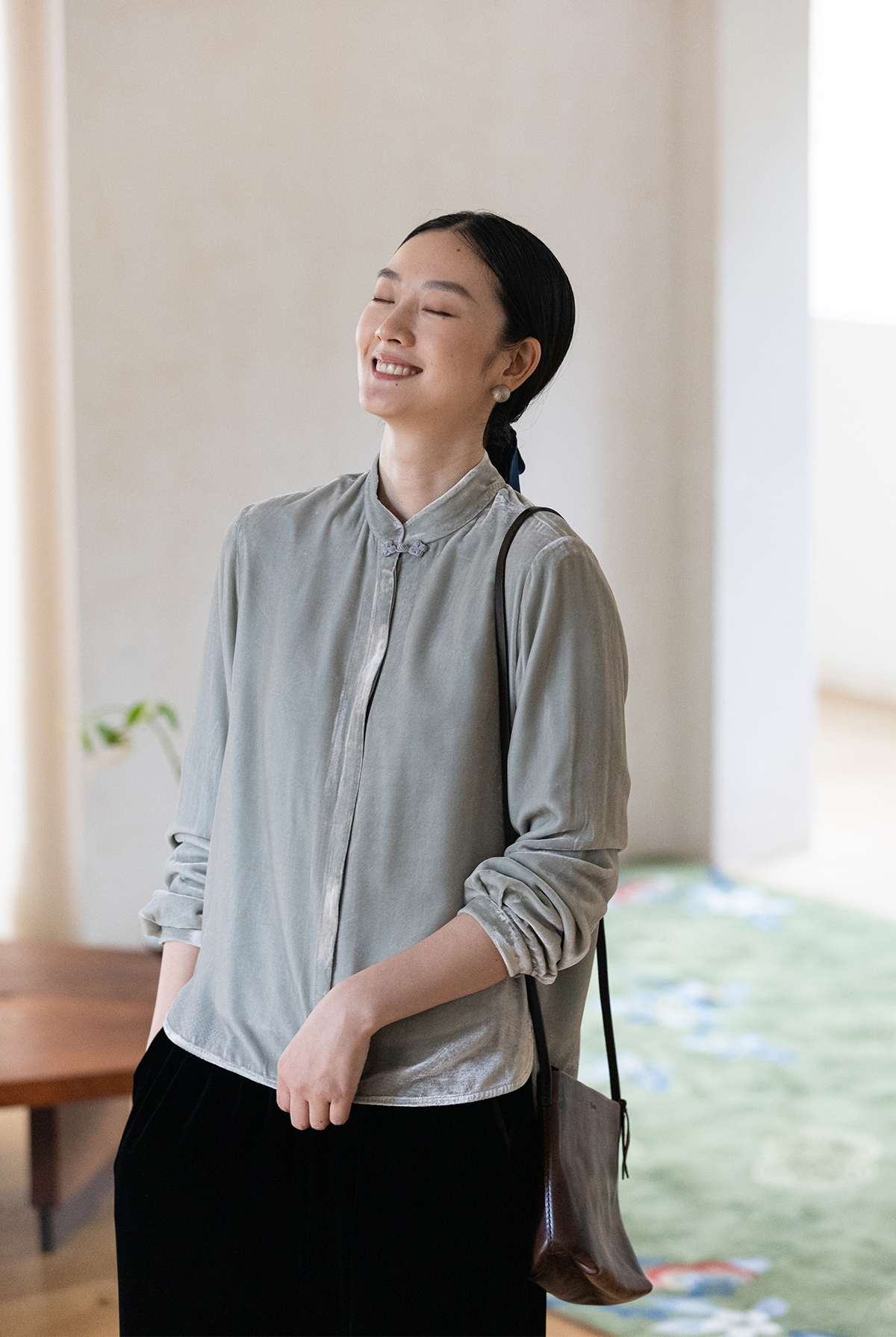 牧衣游原创 丝绒衬衫女新款高级感简约纯色复古通勤百搭衬衣 从轻