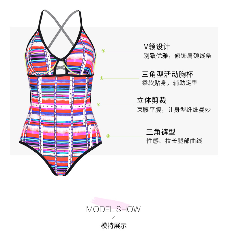 | 袖长: 无袖 | 款式: 三角连体泳衣 |