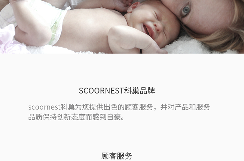 - Scoornest始终秉承给每一位宝宝送去科学的、关心的、创新的成长体验,通过提供商品和服务,使顾客形成守护、发展、巩固这种弥足珍贵的亲情的爱。