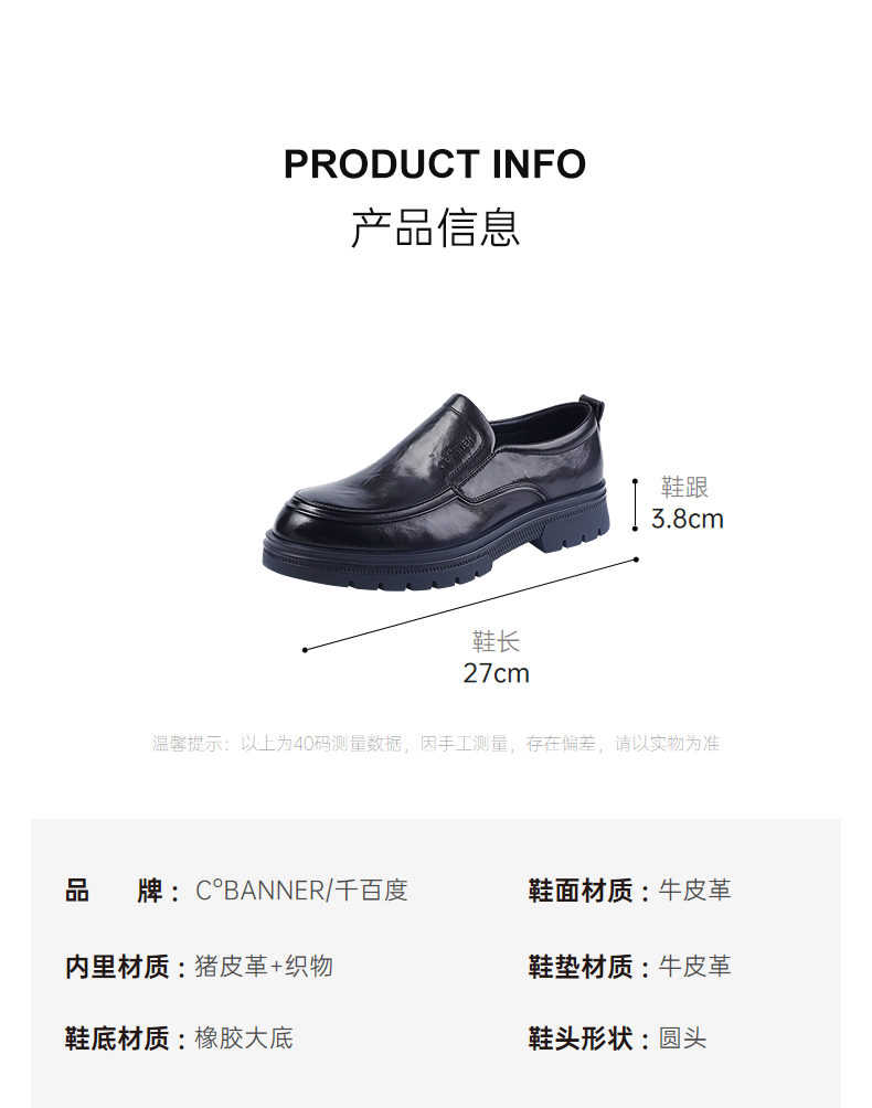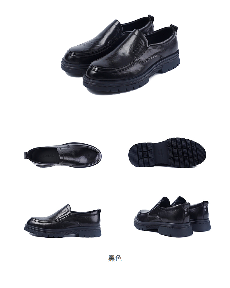 千百度质感牛皮鞋面免系带一脚蹬商务皮鞋男单鞋A25431696