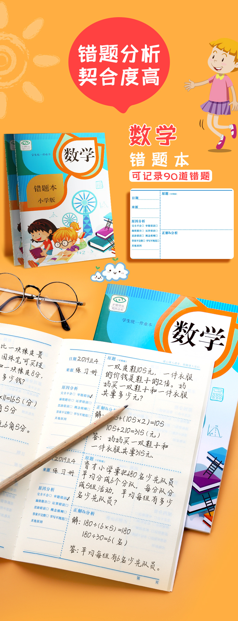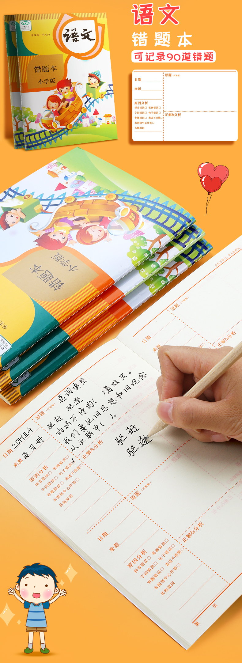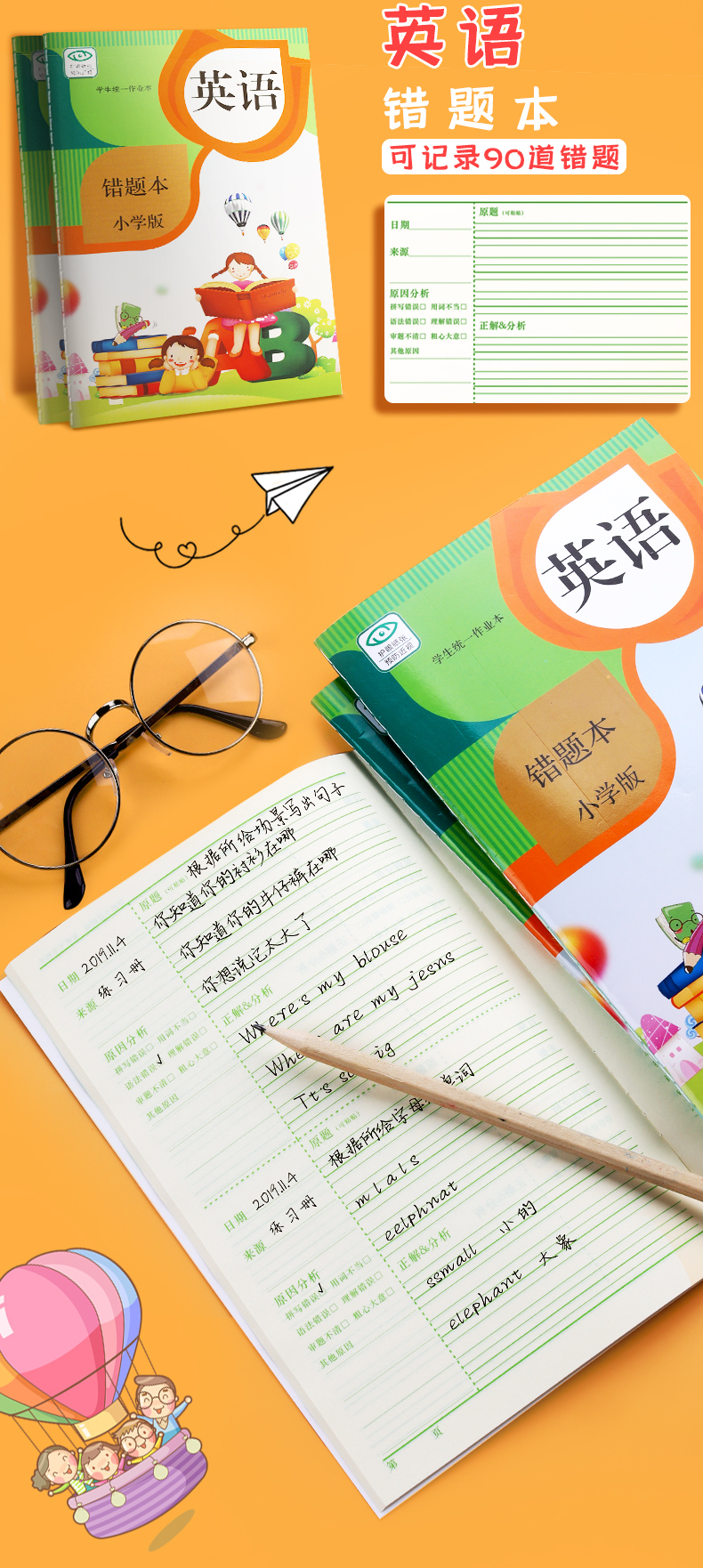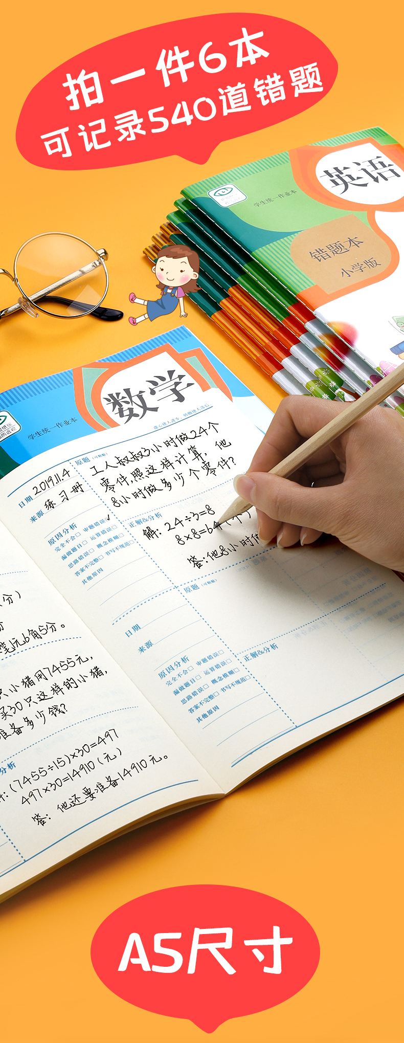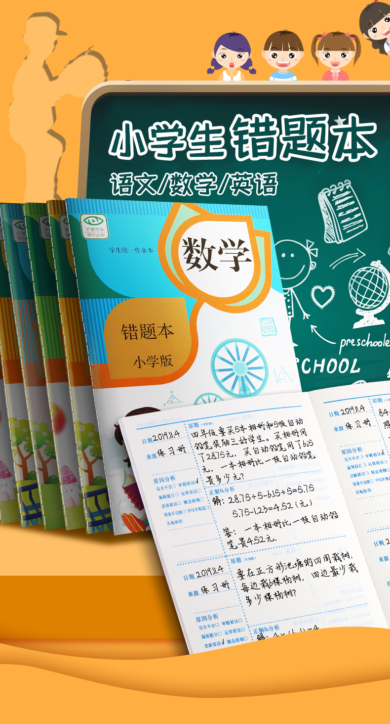 【书行】小学生学习必备【错题纠错本】语数英课前课后纠错提高正确率学习工具本+作业登记本