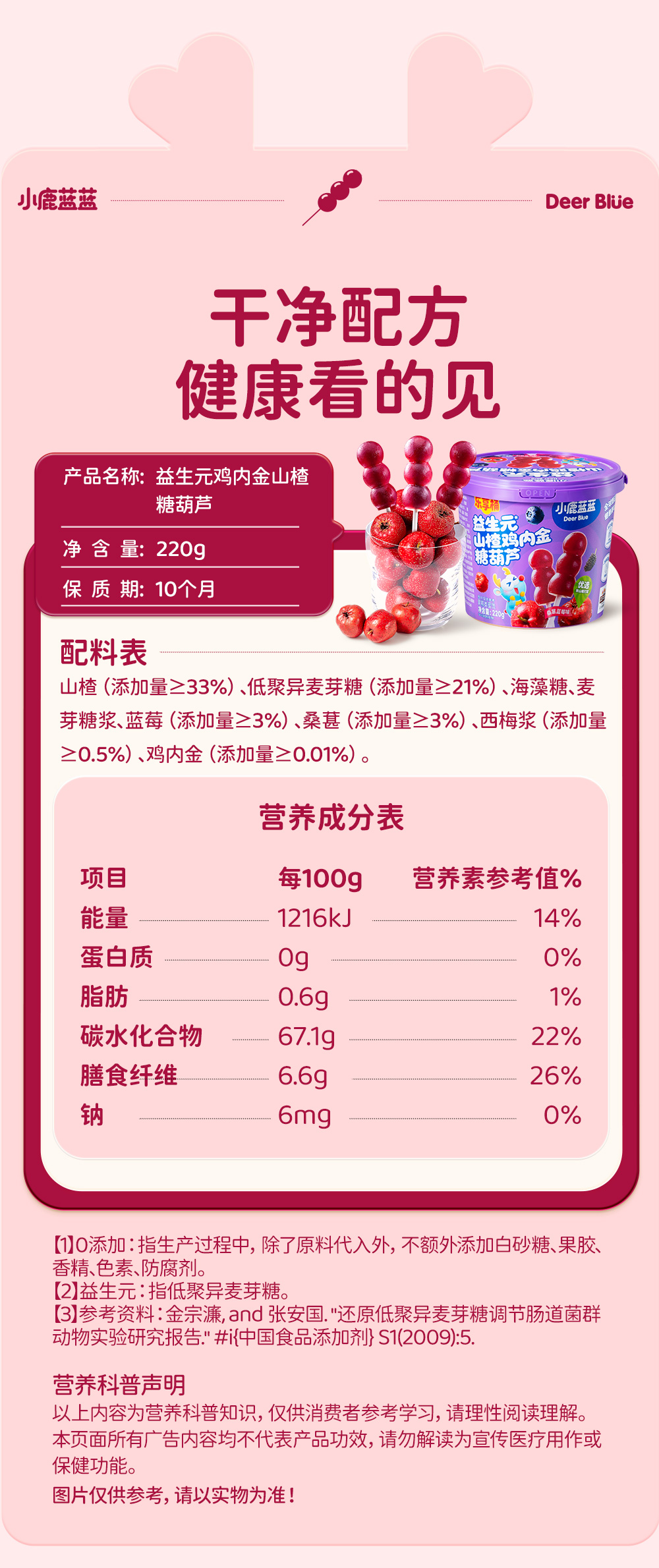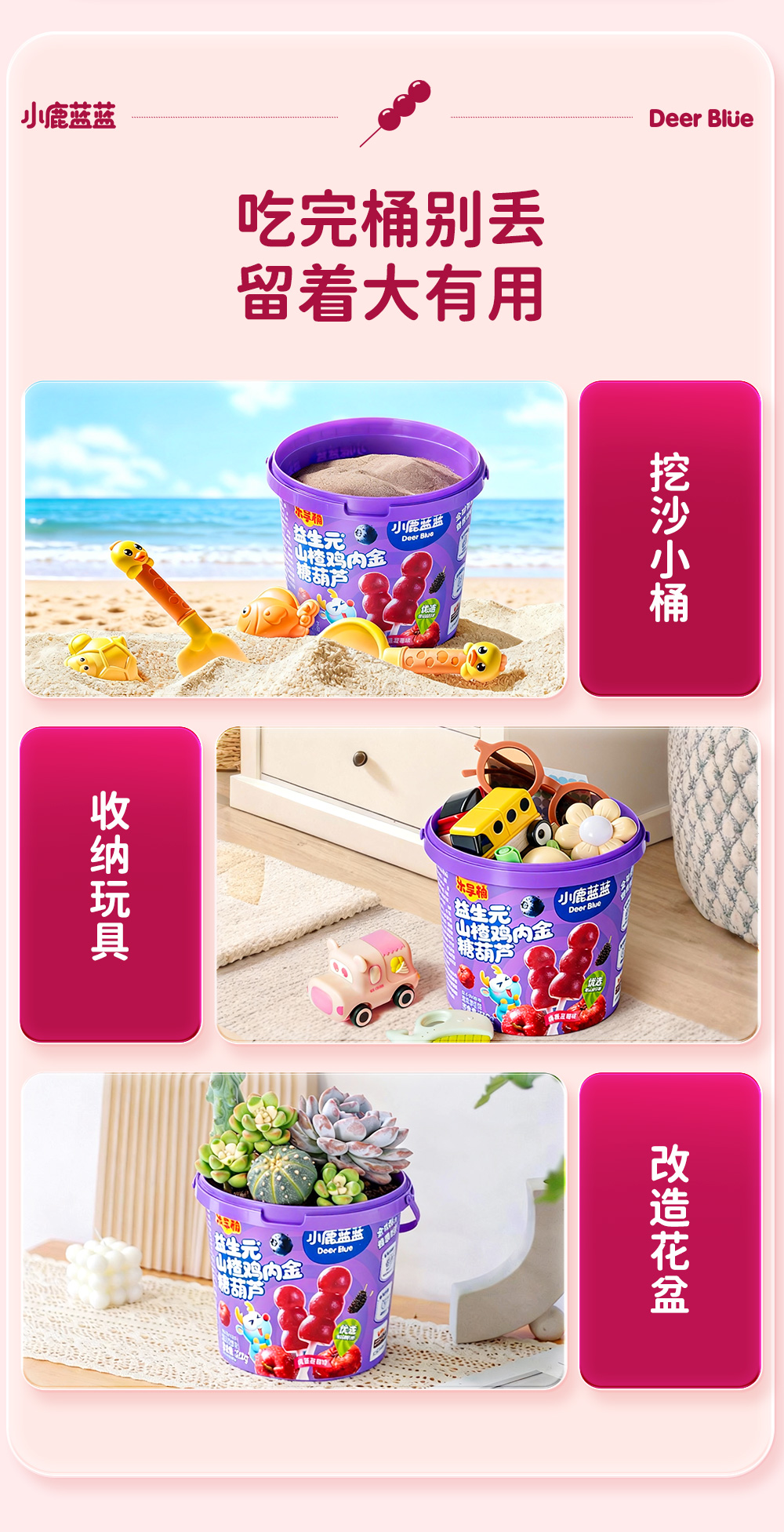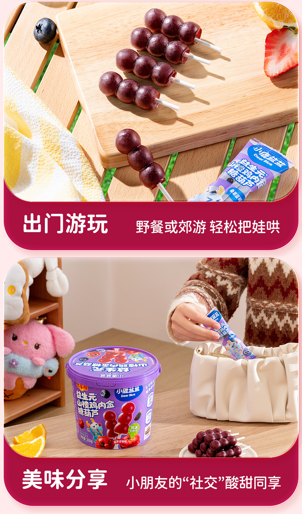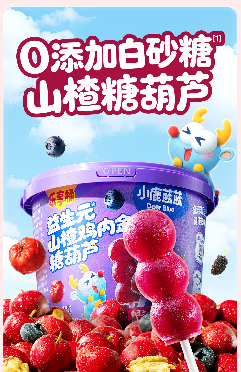 0白砂糖【益生元山楂鸡内金糖葫芦乐享桶】桑葚蓝莓味/220g 原果打浆 酸甜可口