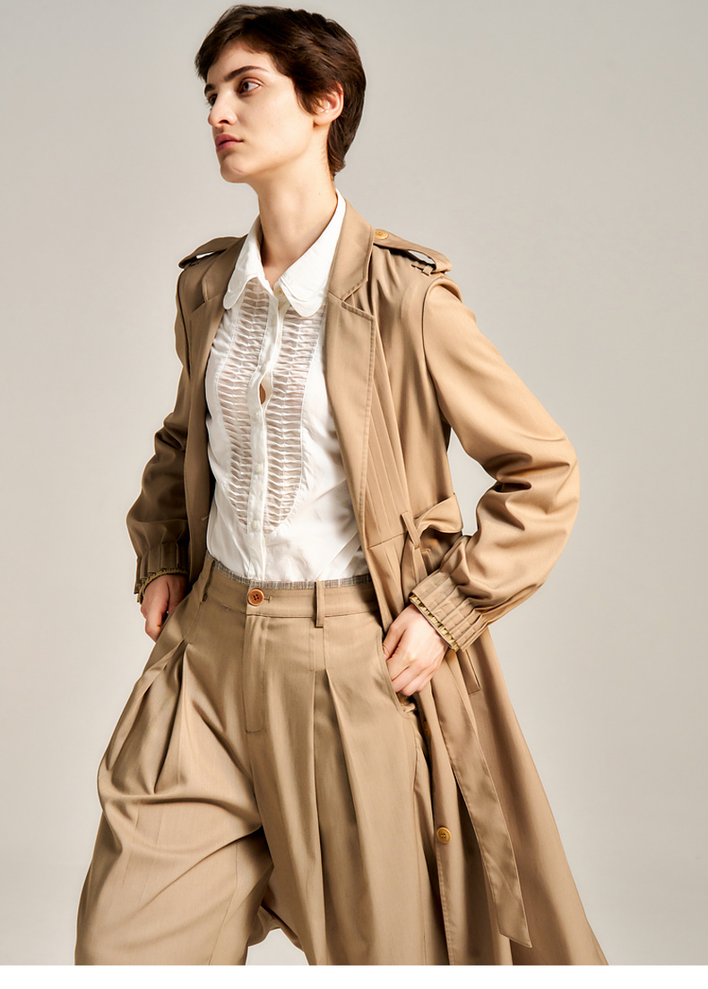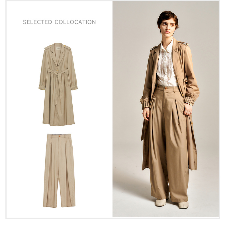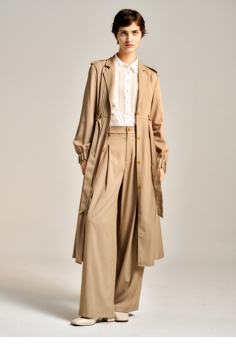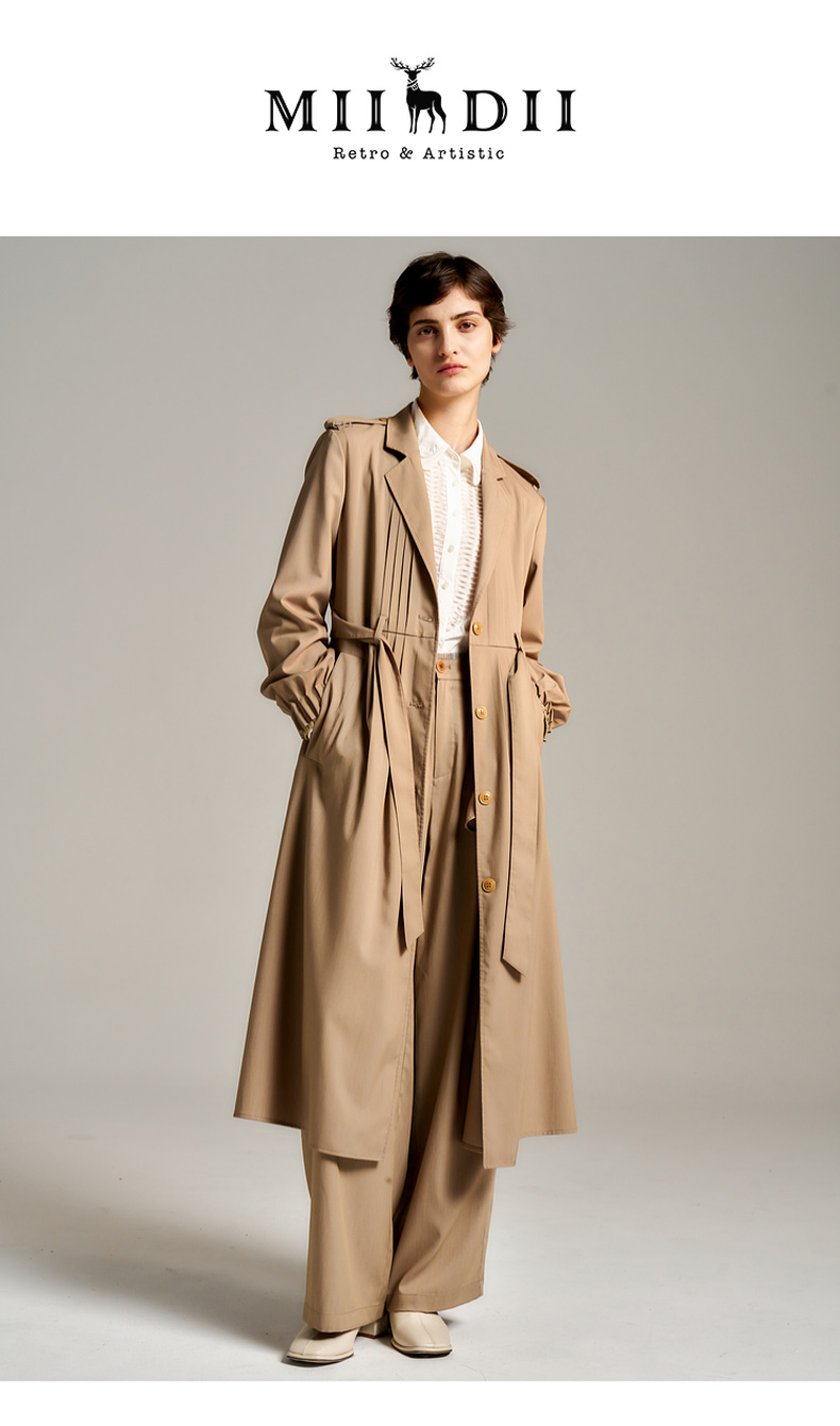 谜底长风衣女士2024秋新品通勤风优雅知性宽松垂感外套243ME1169
