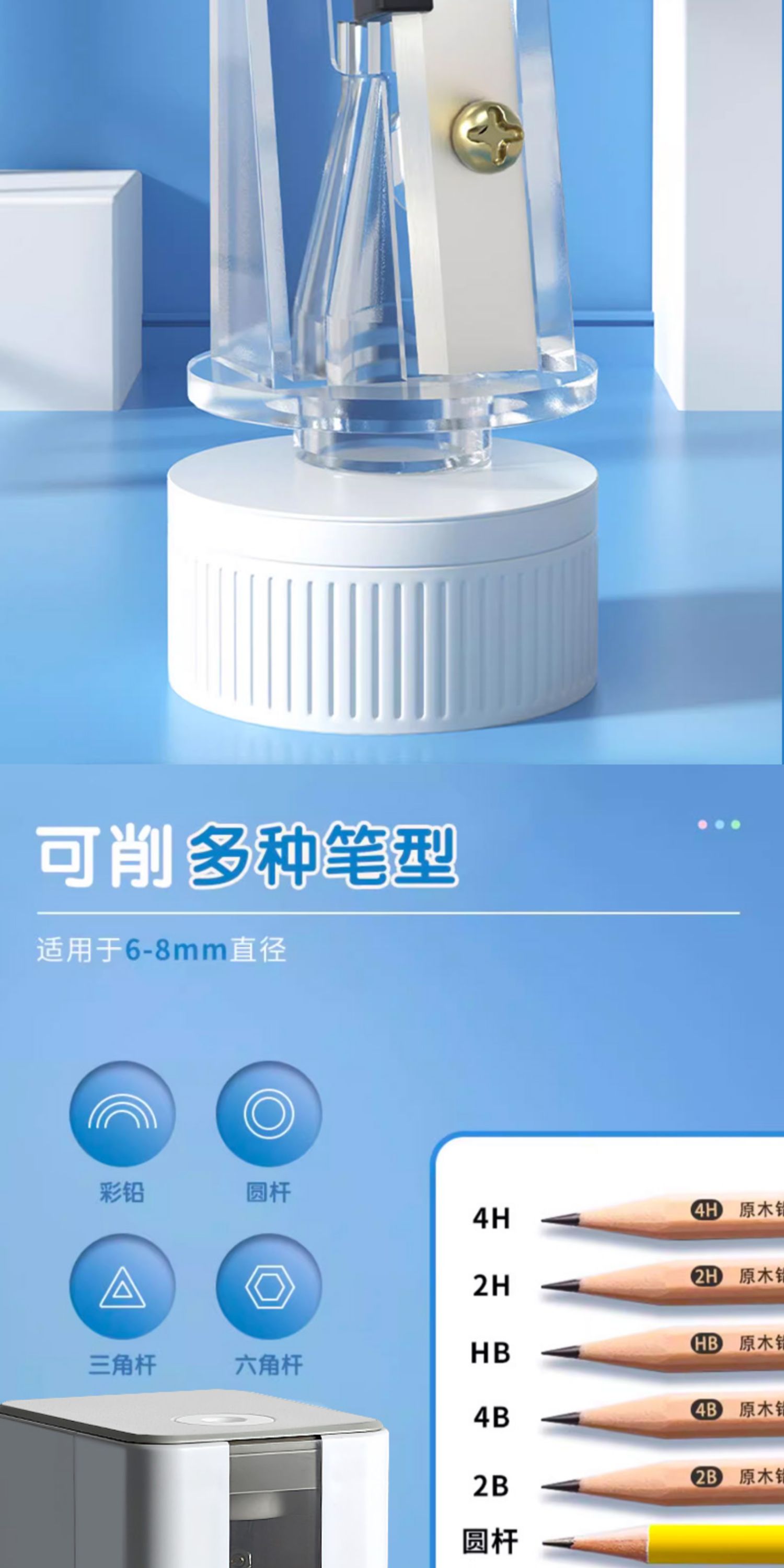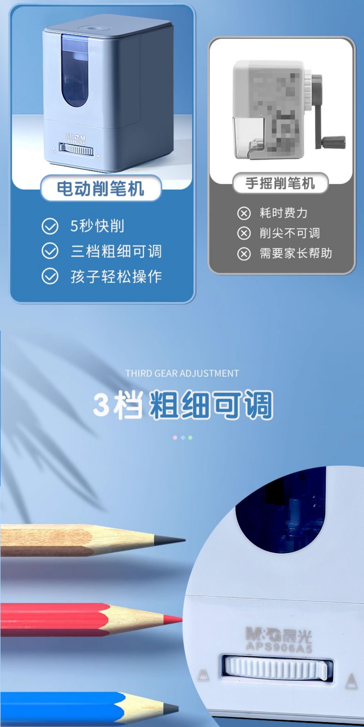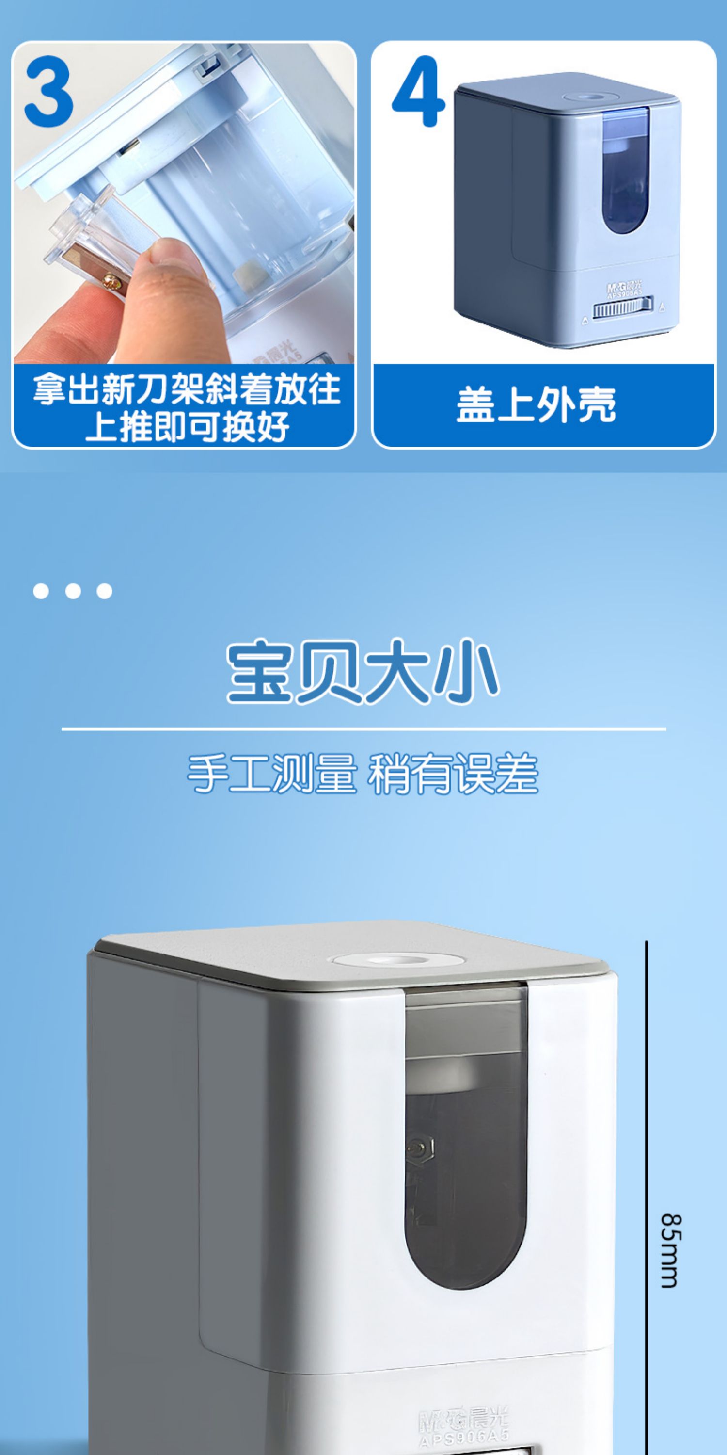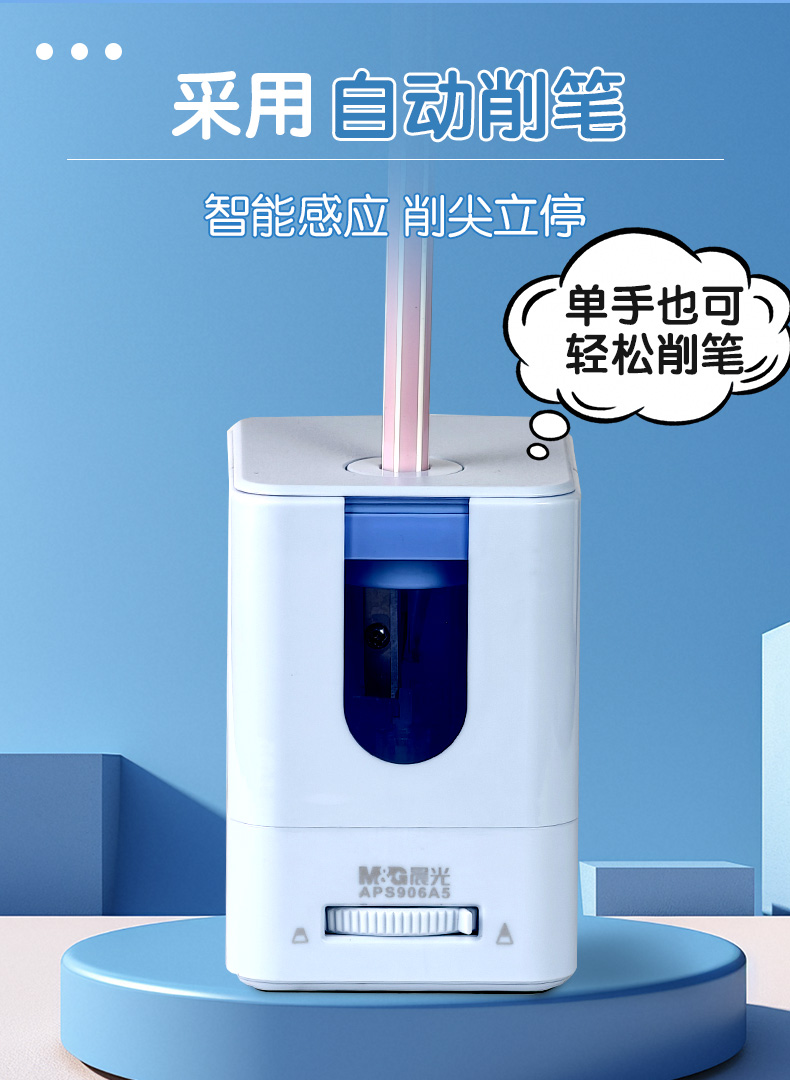 晨光APS906A5电动削小学生用多功能削笔器转笔刀可换刀架充电款削笔器(颜色随机)