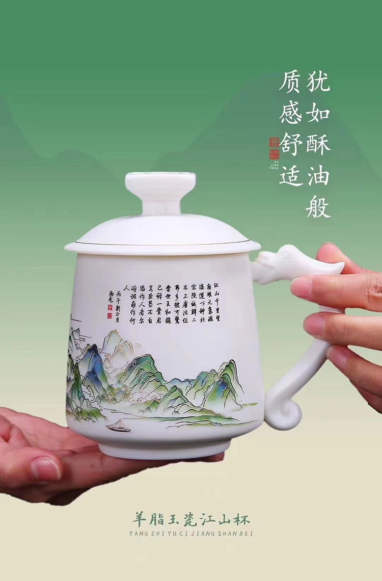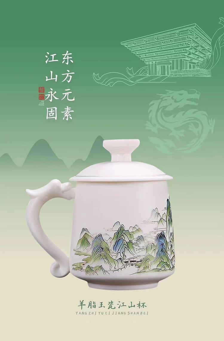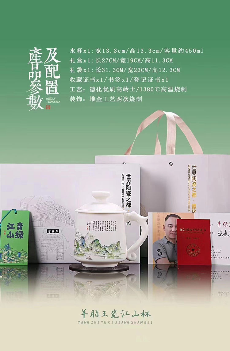 青绿江山 徐建勇人民至上套装单杯羊脂玉瓷手握杯送男士生日礼物