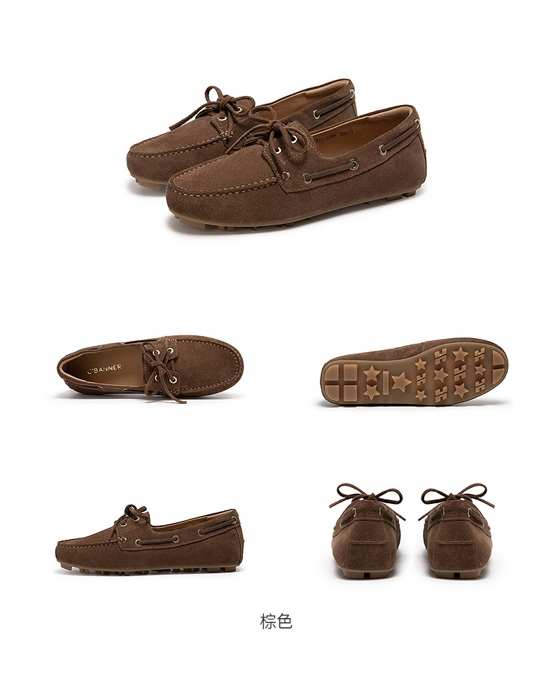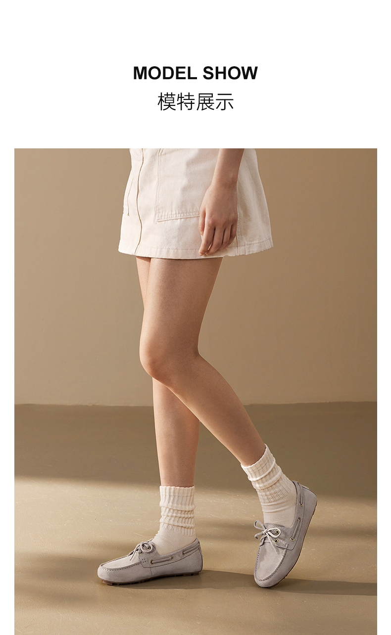 千百度羊皮平底乐福鞋女款休闲深口一脚蹬豆豆鞋单鞋A25181702