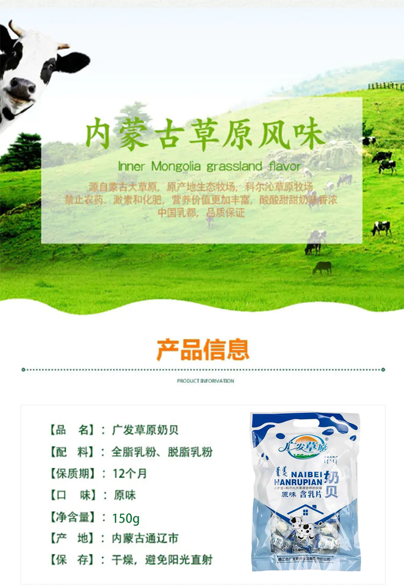 内蒙古广发草原原味奶片150g*2袋装