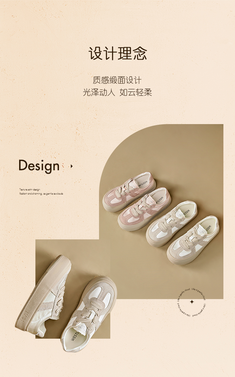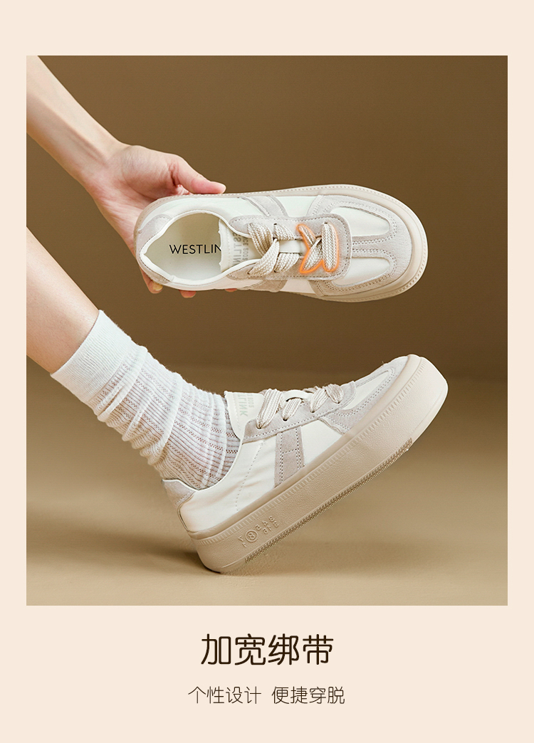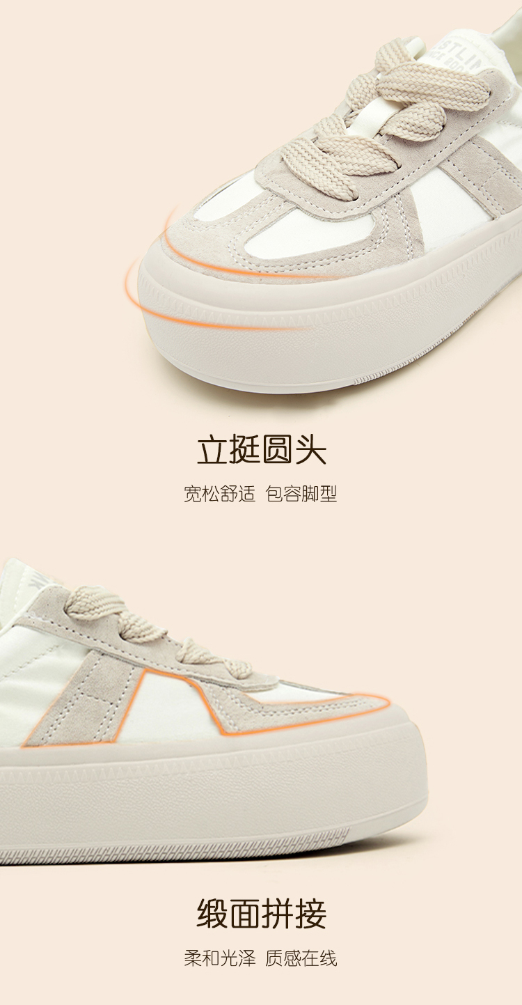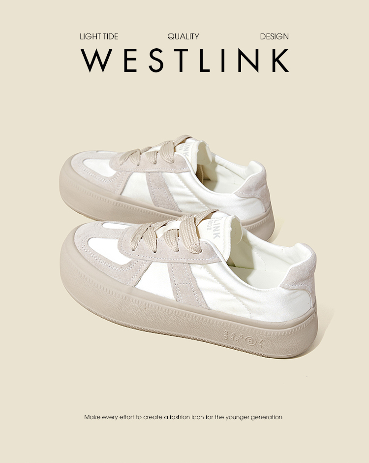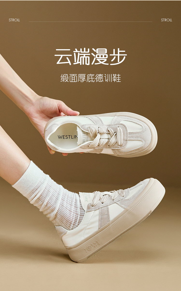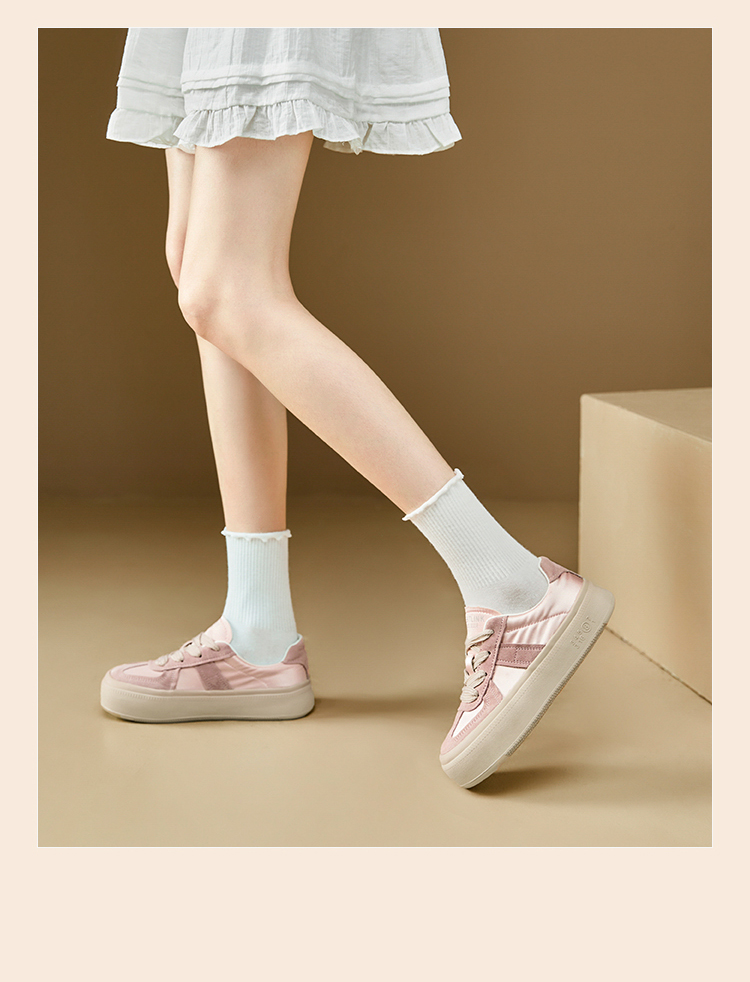 西遇缎面厚底板鞋女新款早春休闲软底配裙子小白鞋增高德训鞋V2747313