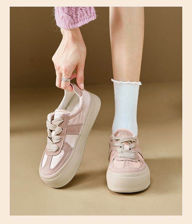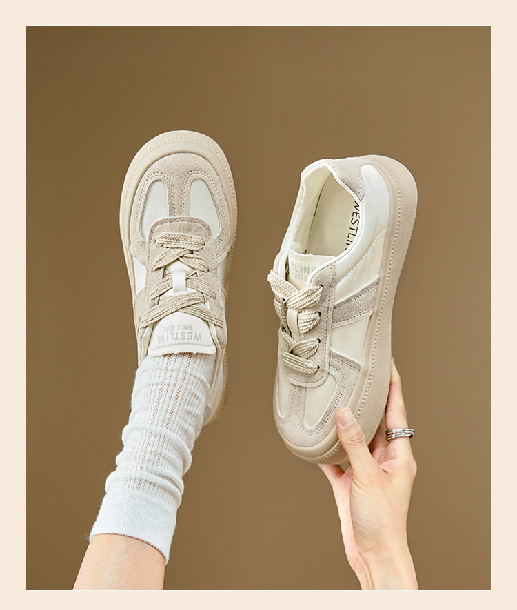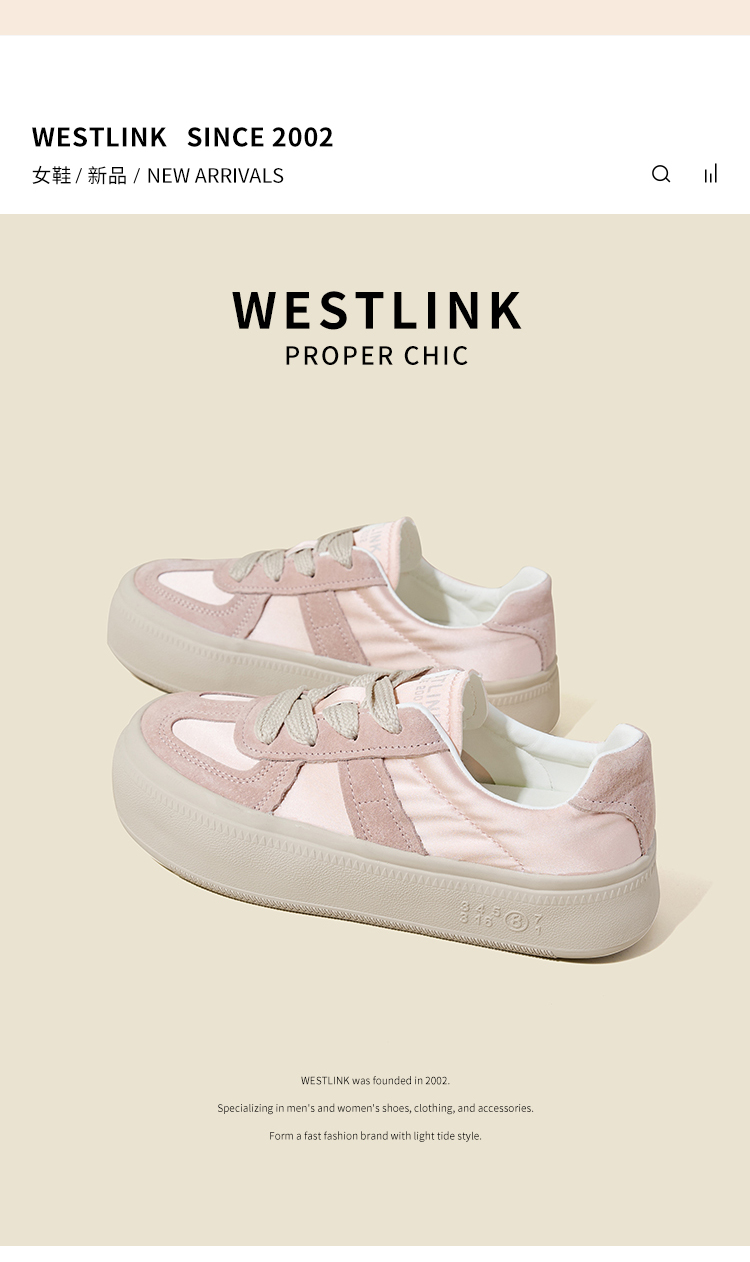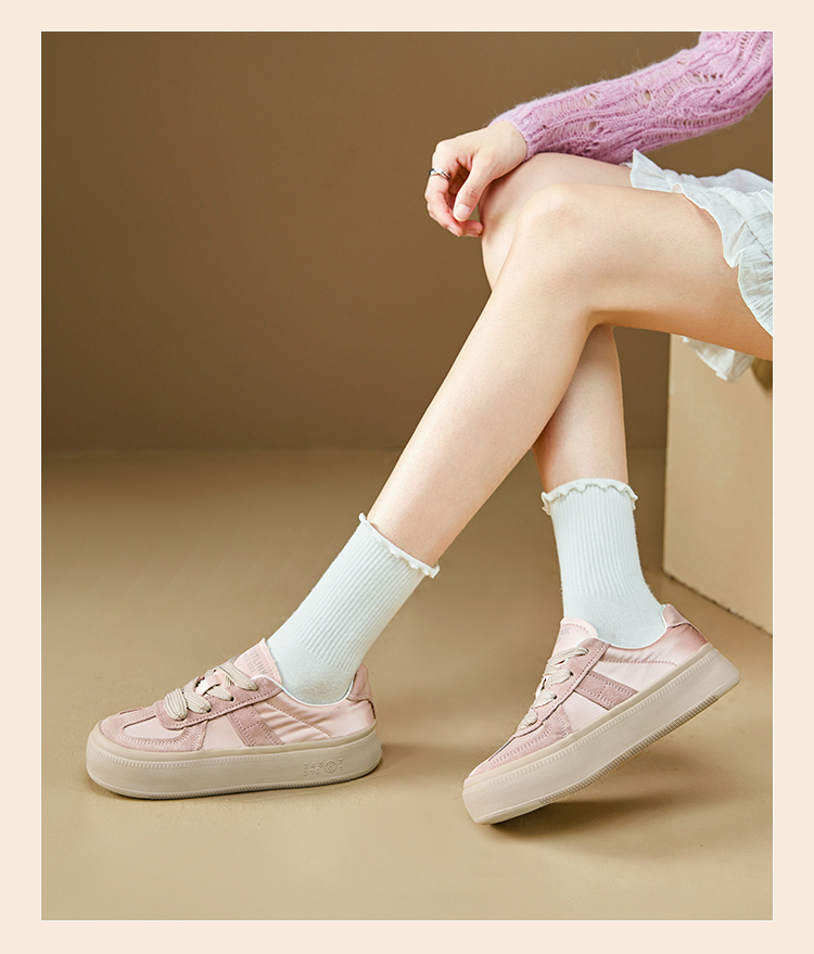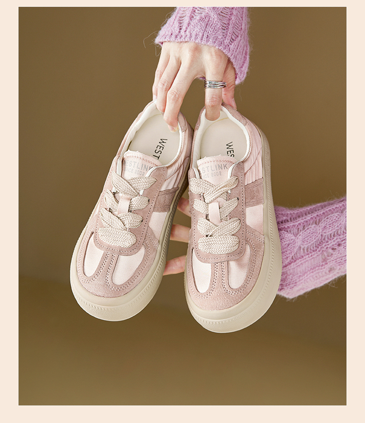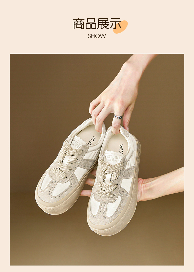 西遇缎面厚底板鞋女新款早春休闲软底配裙子小白鞋增高德训鞋V2747313