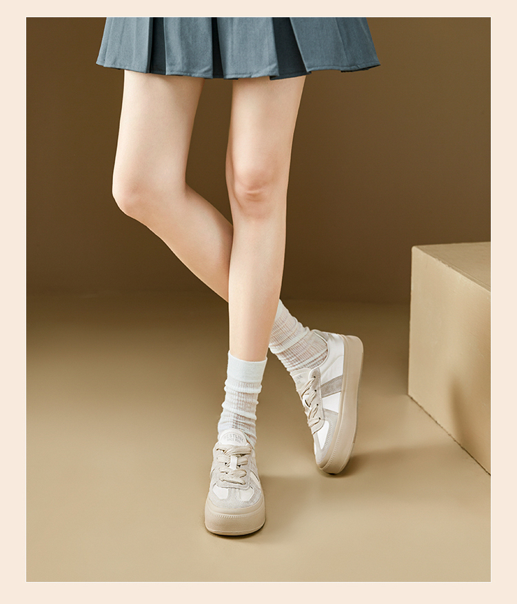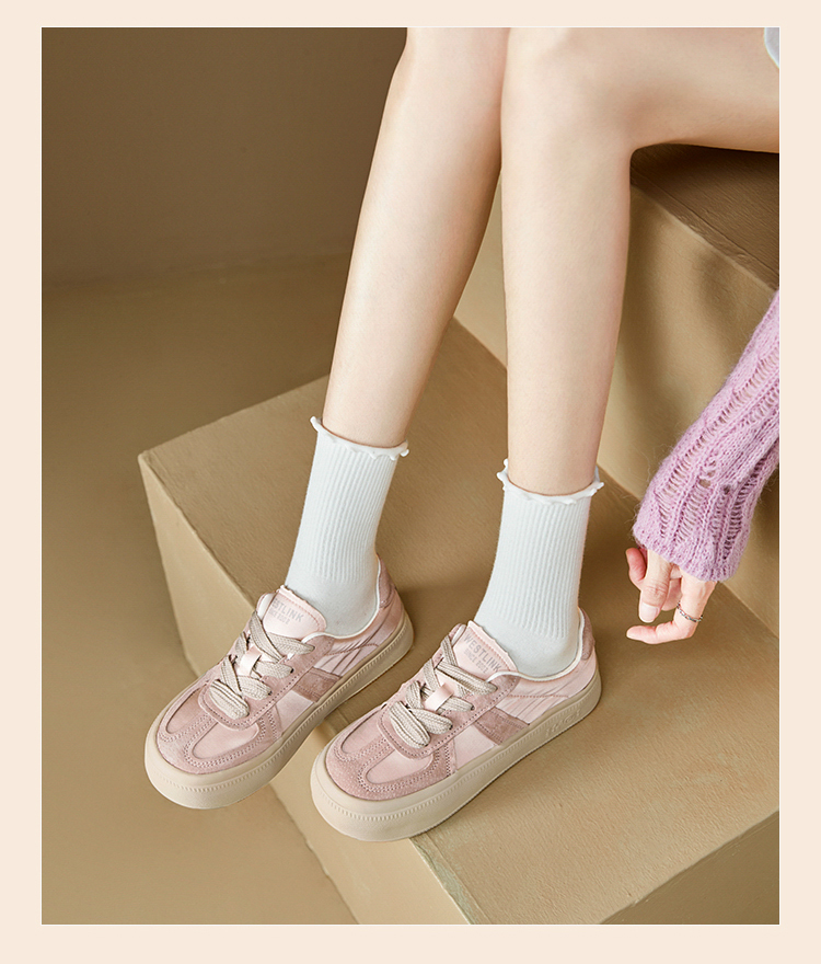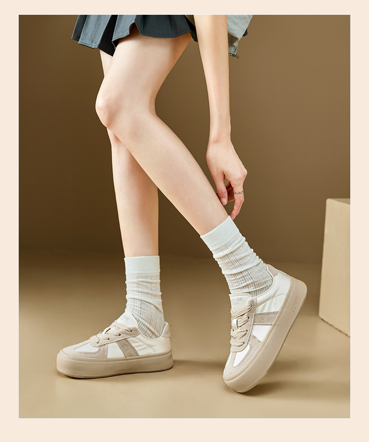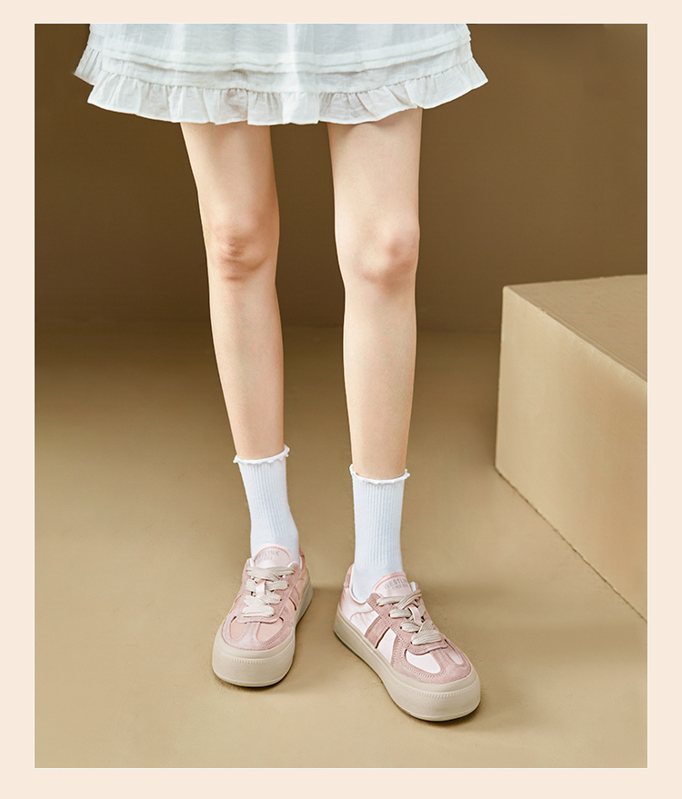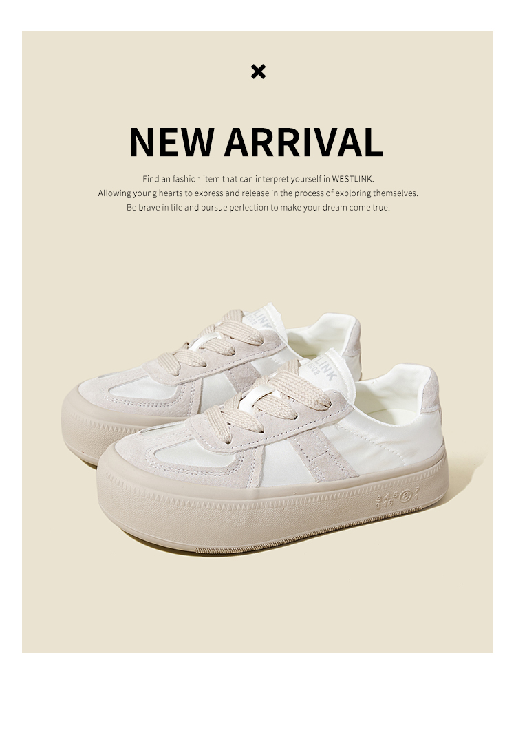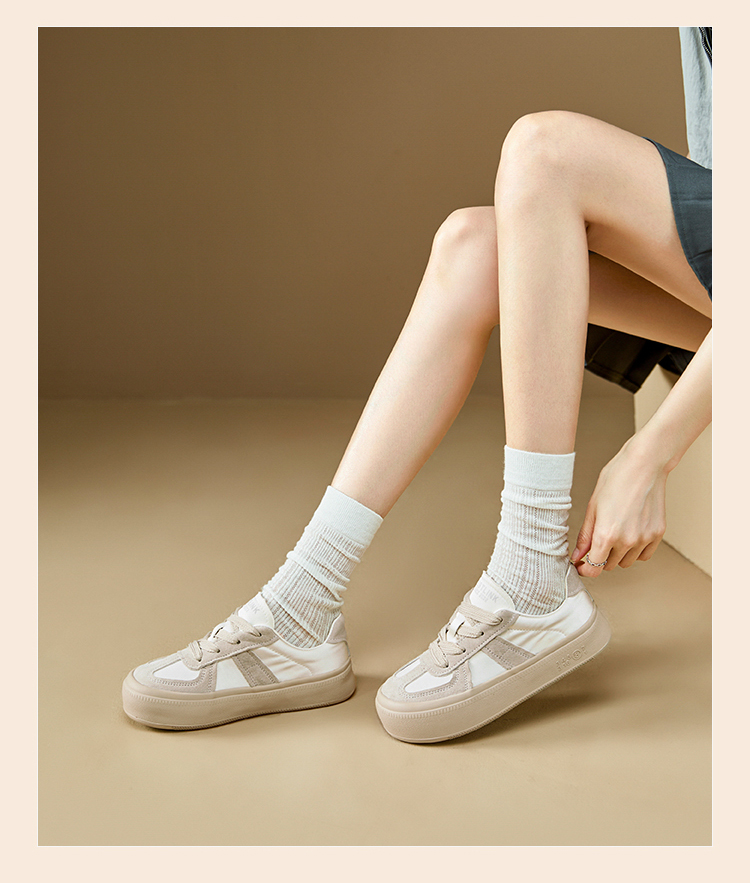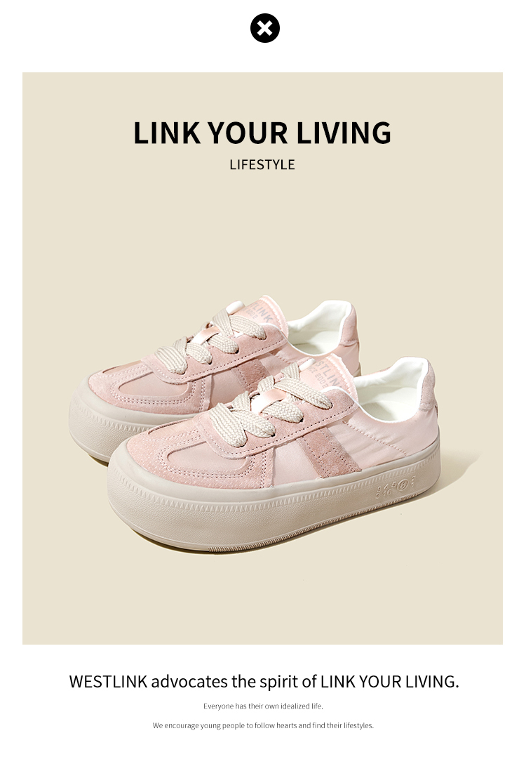 西遇缎面厚底板鞋女新款早春休闲软底配裙子小白鞋增高德训鞋V2747313