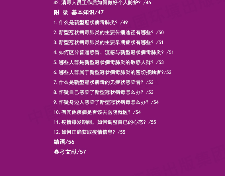 新型冠状病毒肺炎暴露风险防范手册.特殊从业人员 9787511143082 6·5”环境日公众普法宣传资料 预防新型冠状病