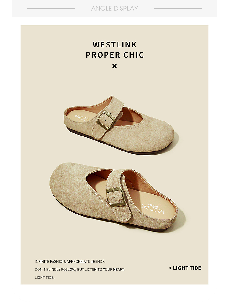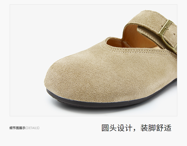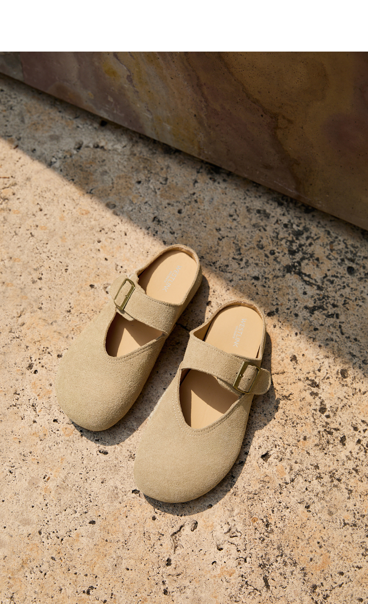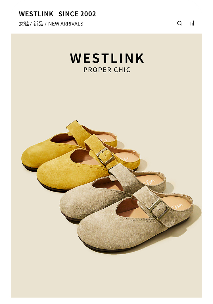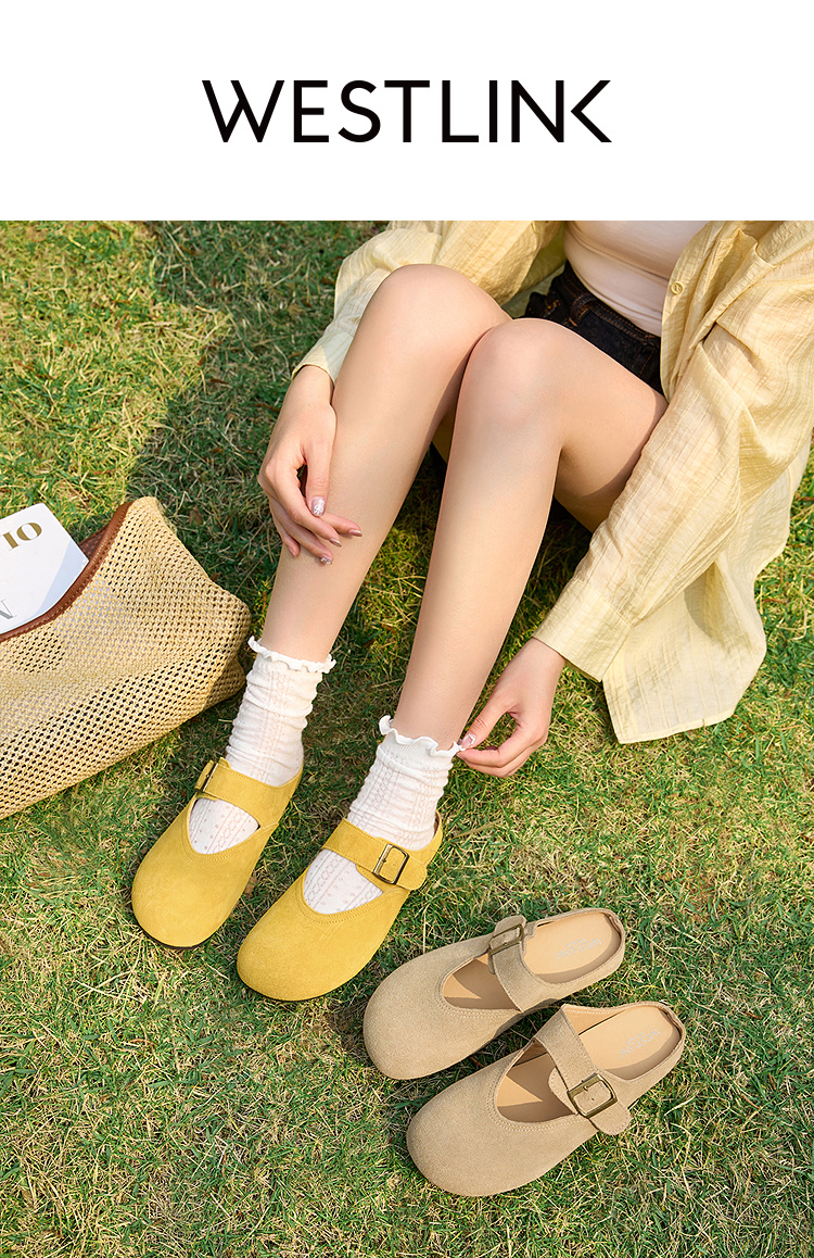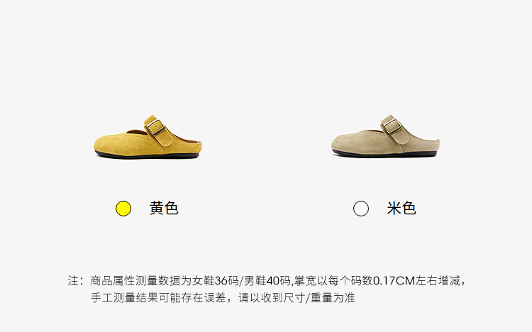 西遇勃肯鞋女半拖新款春夏一脚蹬懒人鞋黄色玛丽珍包头拖鞋V0156619