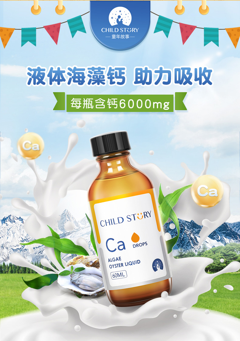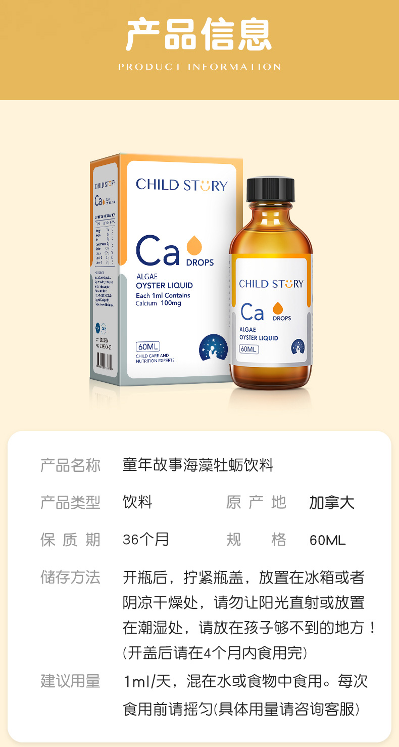童年故事 海藻牡蛎饮料 儿童钙滴剂 加拿大原装进口正品 60ml/瓶【72小时发货】