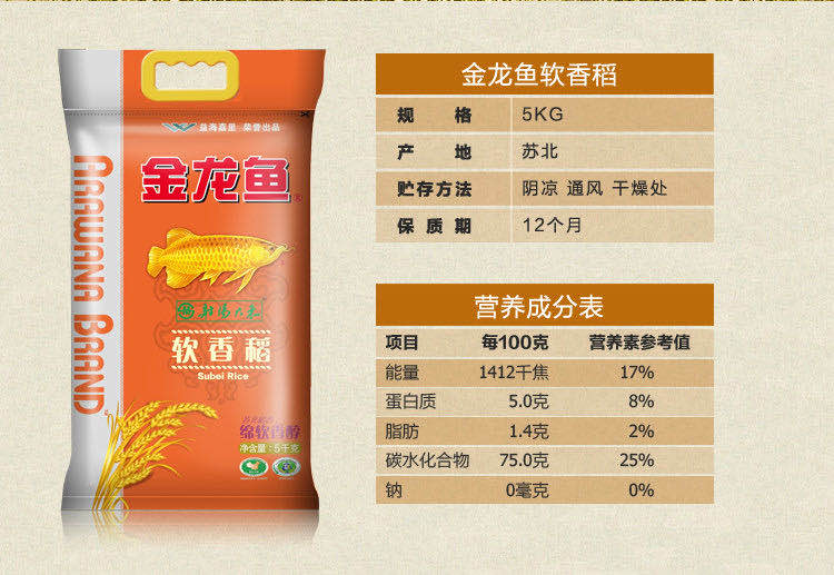 【自营】【组合款】金龙鱼苏北软香稻5KG+胡姬花金衣玉食古法花生油1.8L