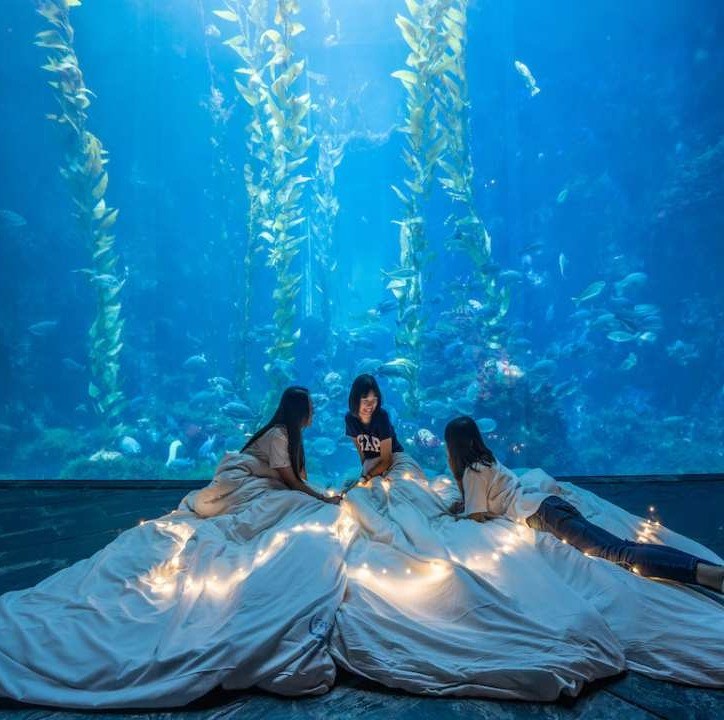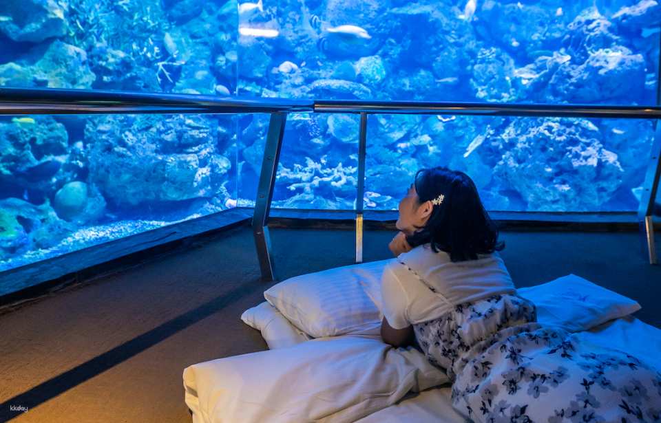 其特色是模拟东太平洋的海洋池。其压力观察窗宽16.5米,高4.85米。池畔玻璃厚约33厘米。享受与鱼共眠的时光,实现美丽的海洋梦。