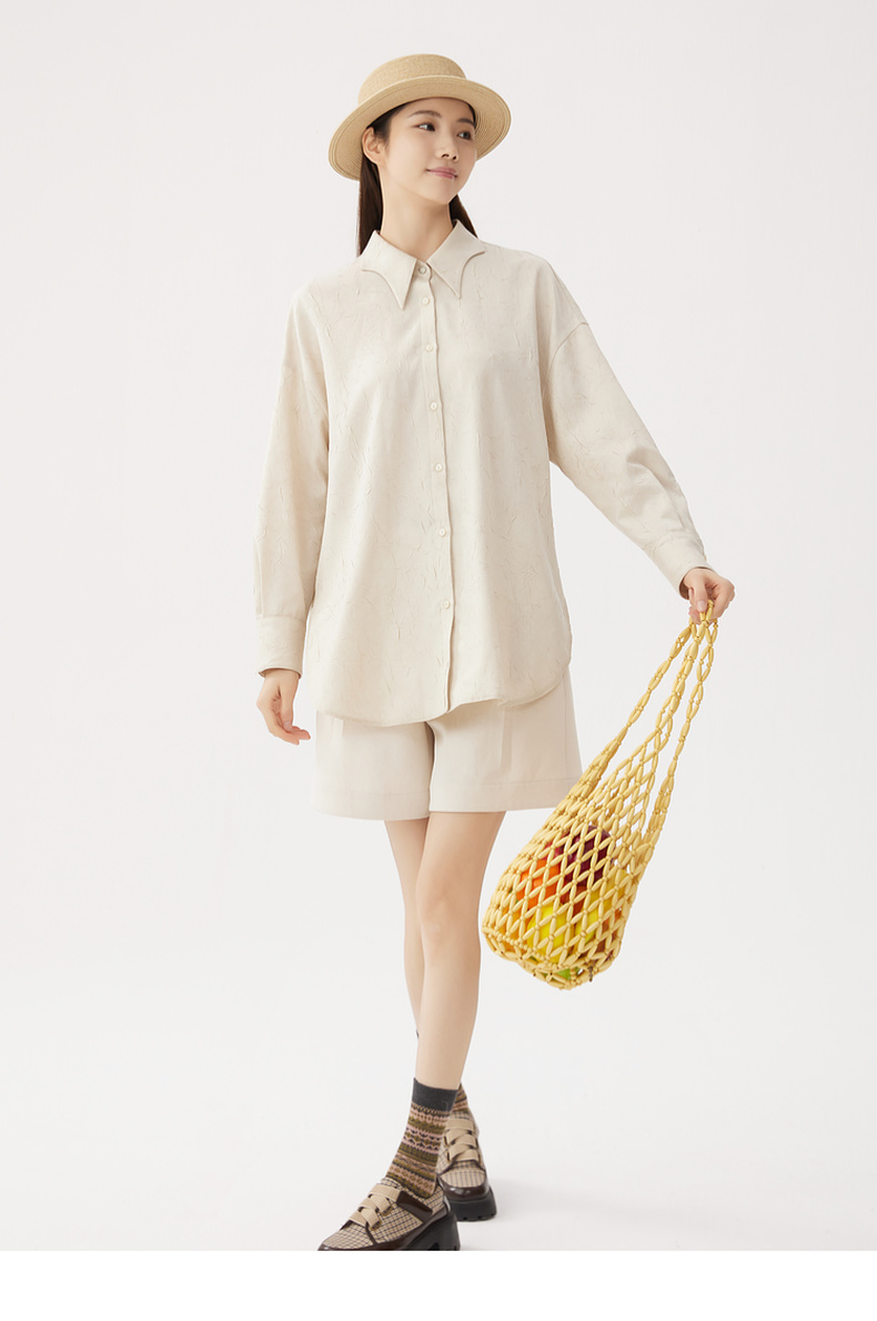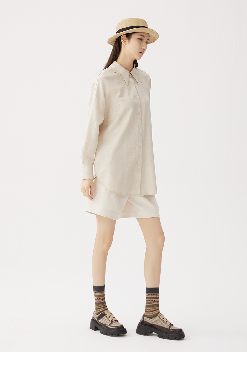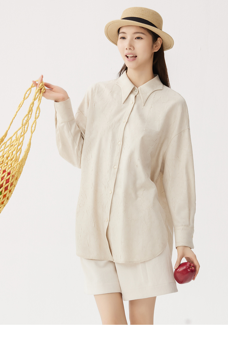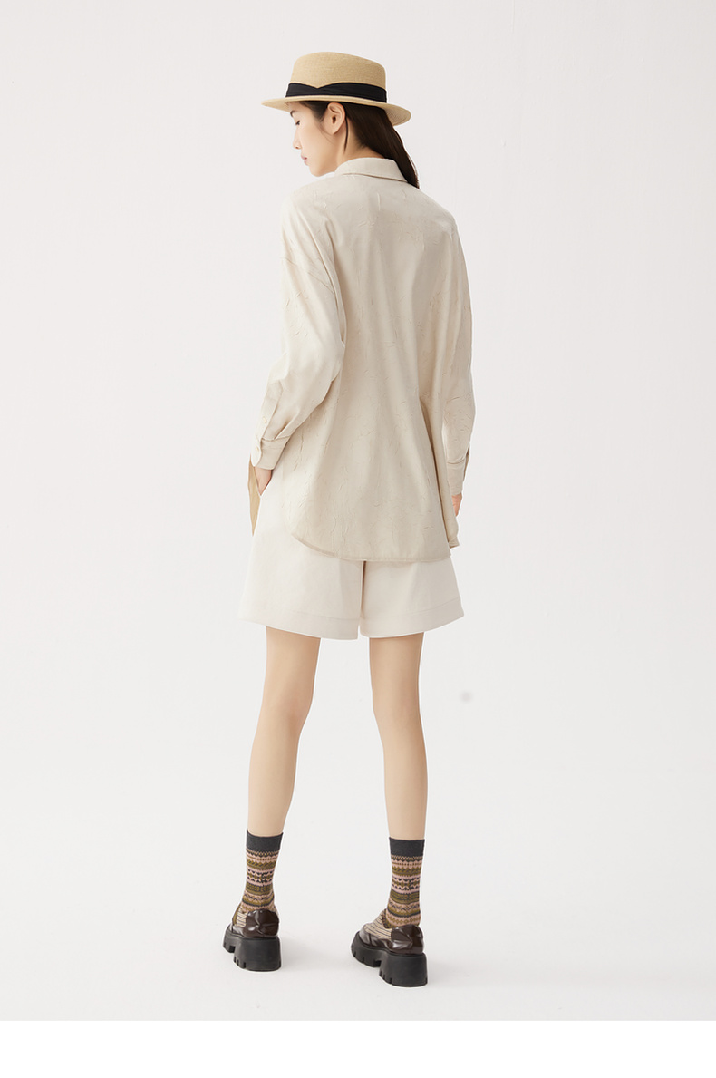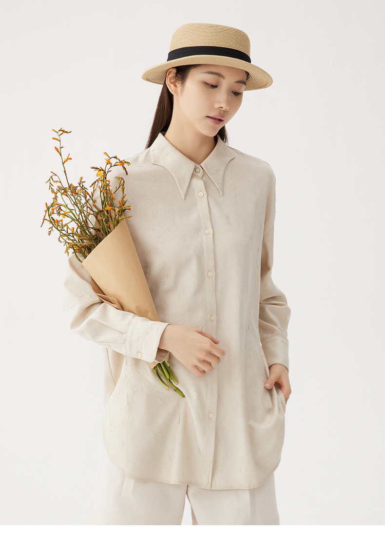 谜底中长款衬衫长袖女2024秋新品通勤风设计感宽松衬衣243MC1212