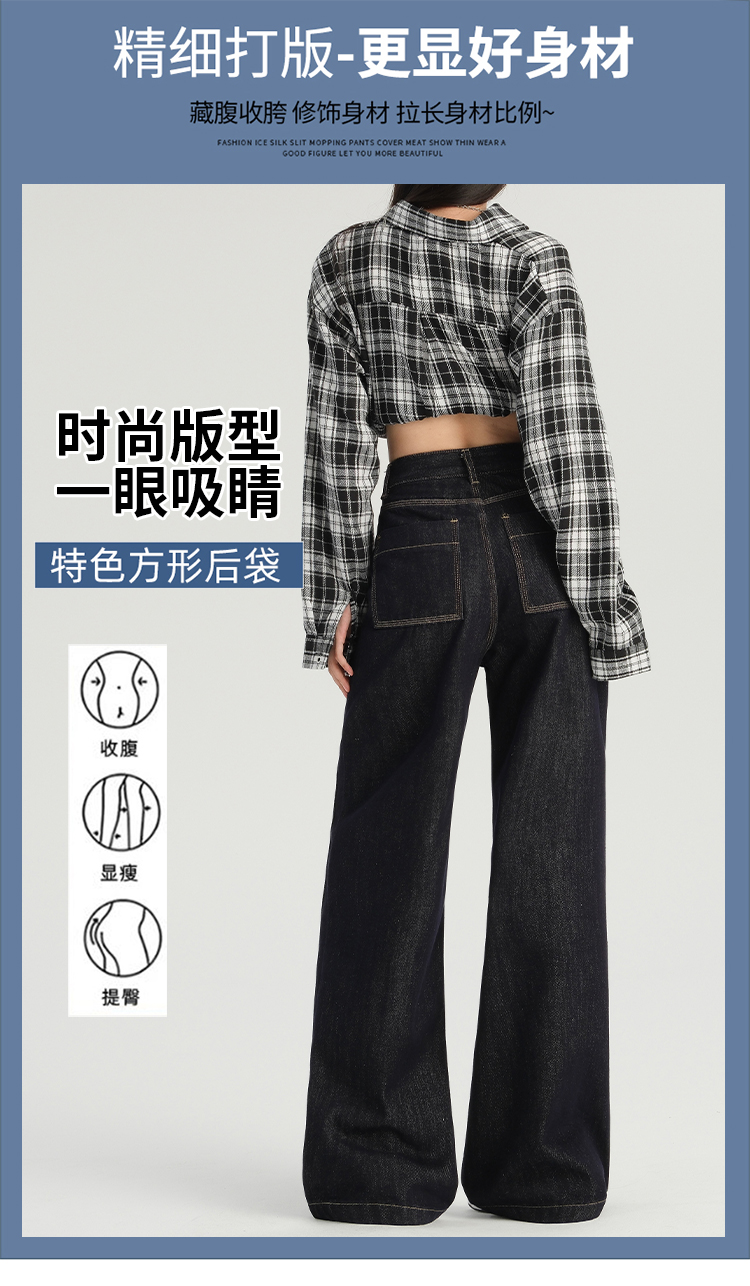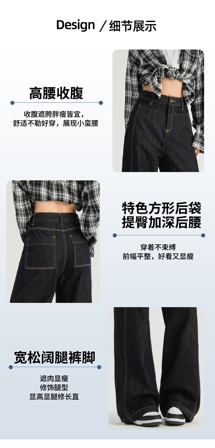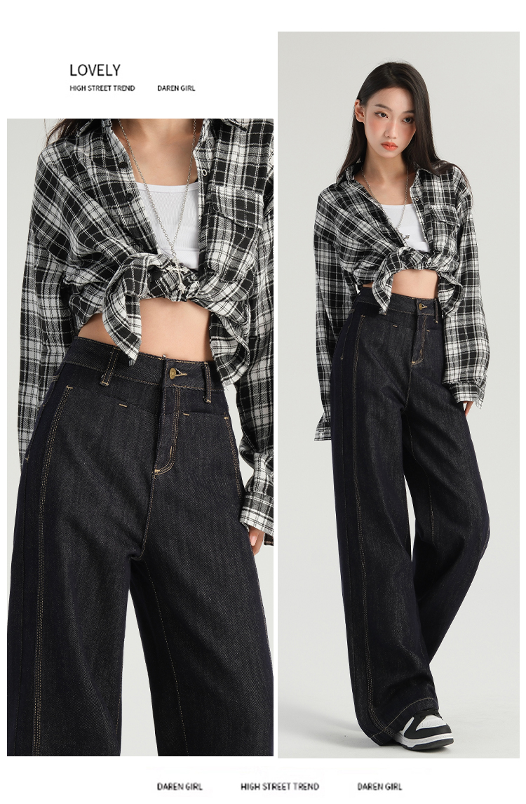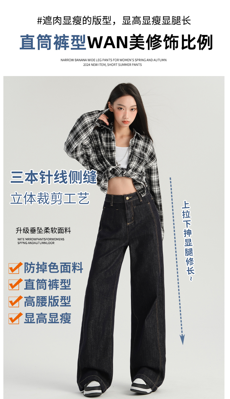 罗蒙女士牛仔裤加绒秋冬保暖长裤休闲百搭显瘦阔腿长裤通勤好穿女裤