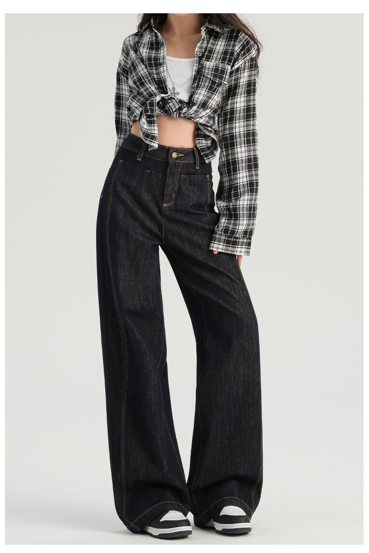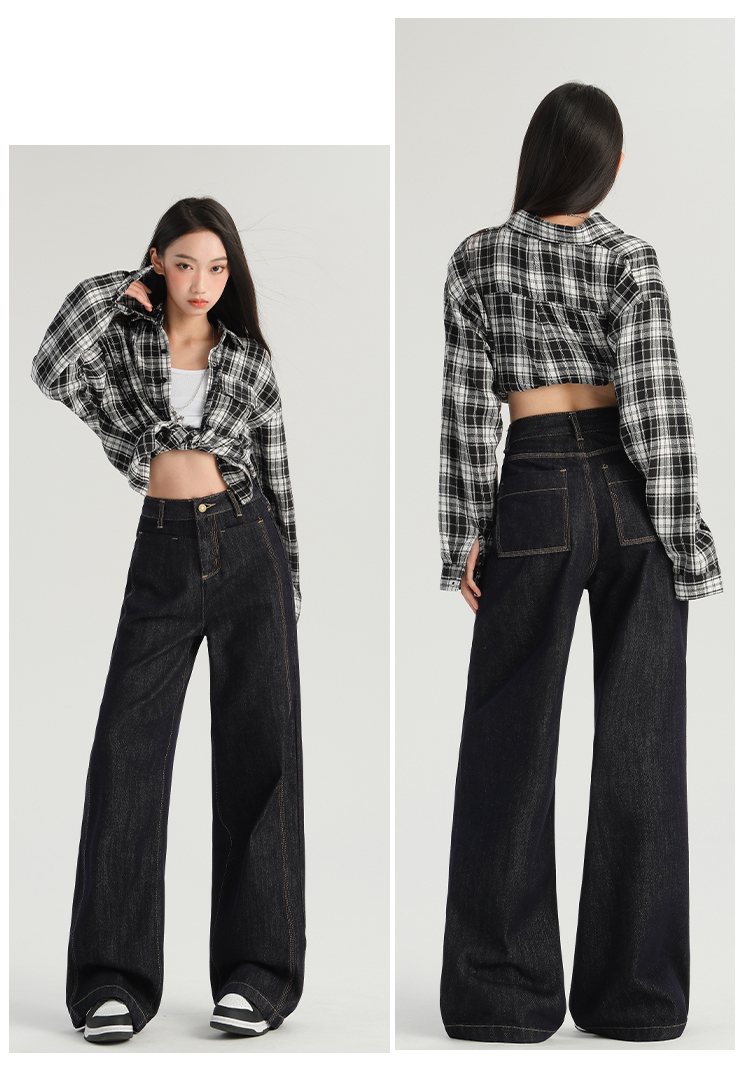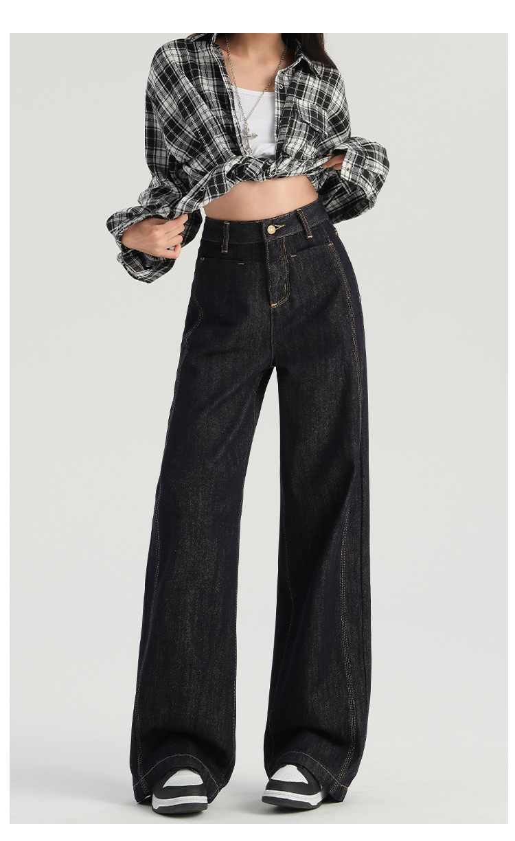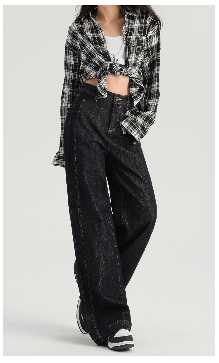 罗蒙女士牛仔裤加绒秋冬保暖长裤休闲百搭显瘦阔腿长裤通勤好穿女裤