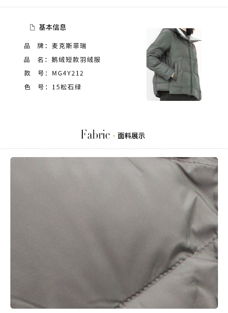麦克斯菲瑞鹅绒短款羽绒服mg4y212