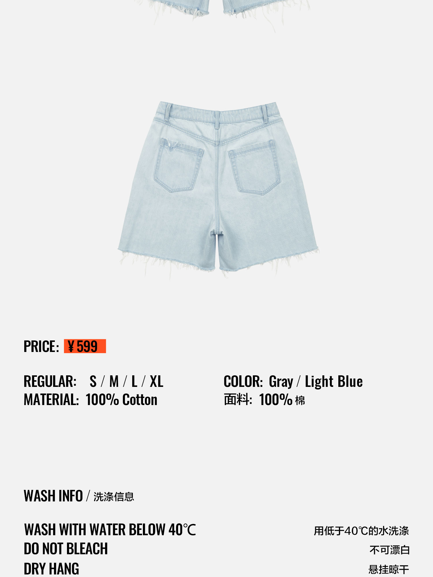 RANDOMEVENT(RDET) 21SS 仿旧洗水散口牛仔短裤