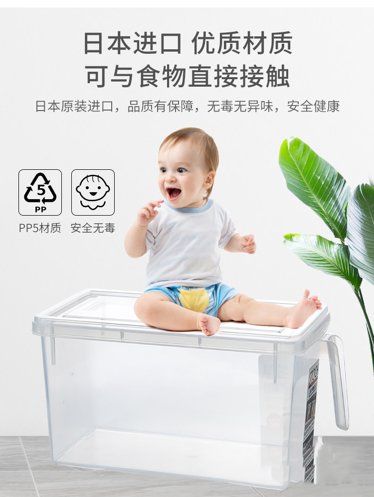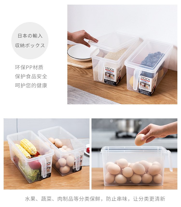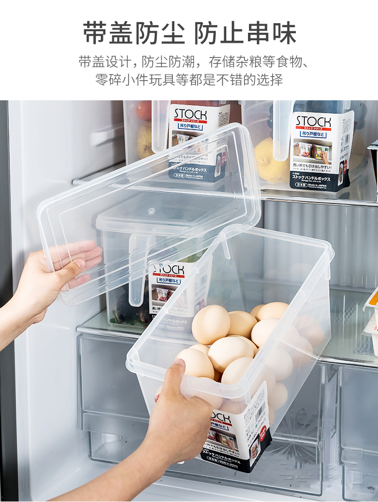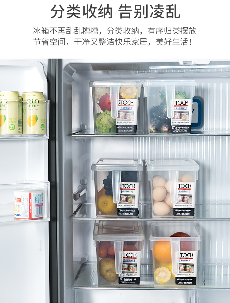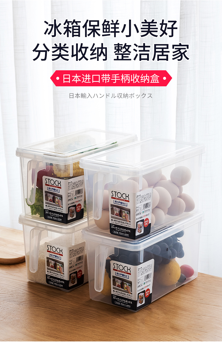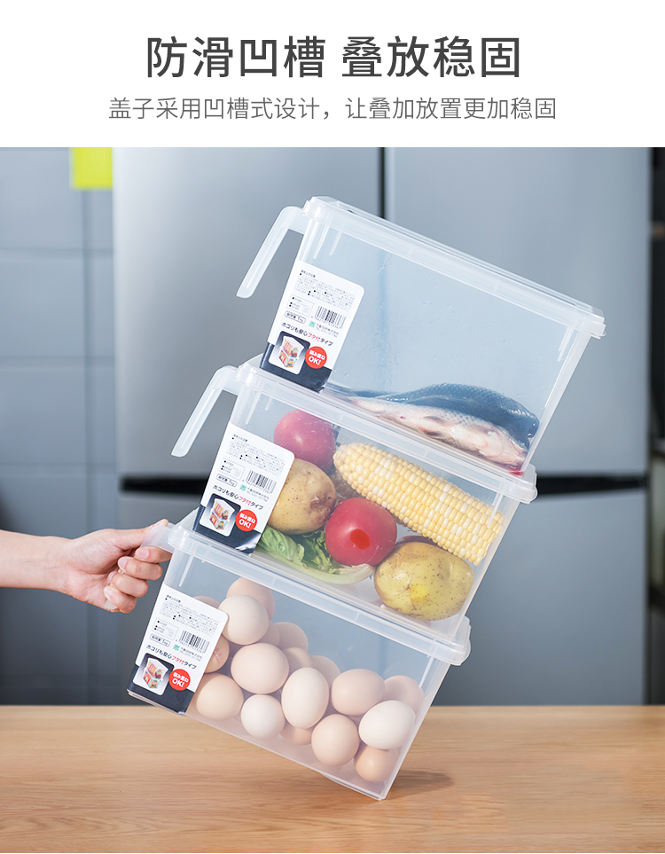 日本进口冰箱收纳盒套装食品级保鲜大号厨房水果蔬菜带手柄储物盒【不支持补差,非质量问题不退不换】S