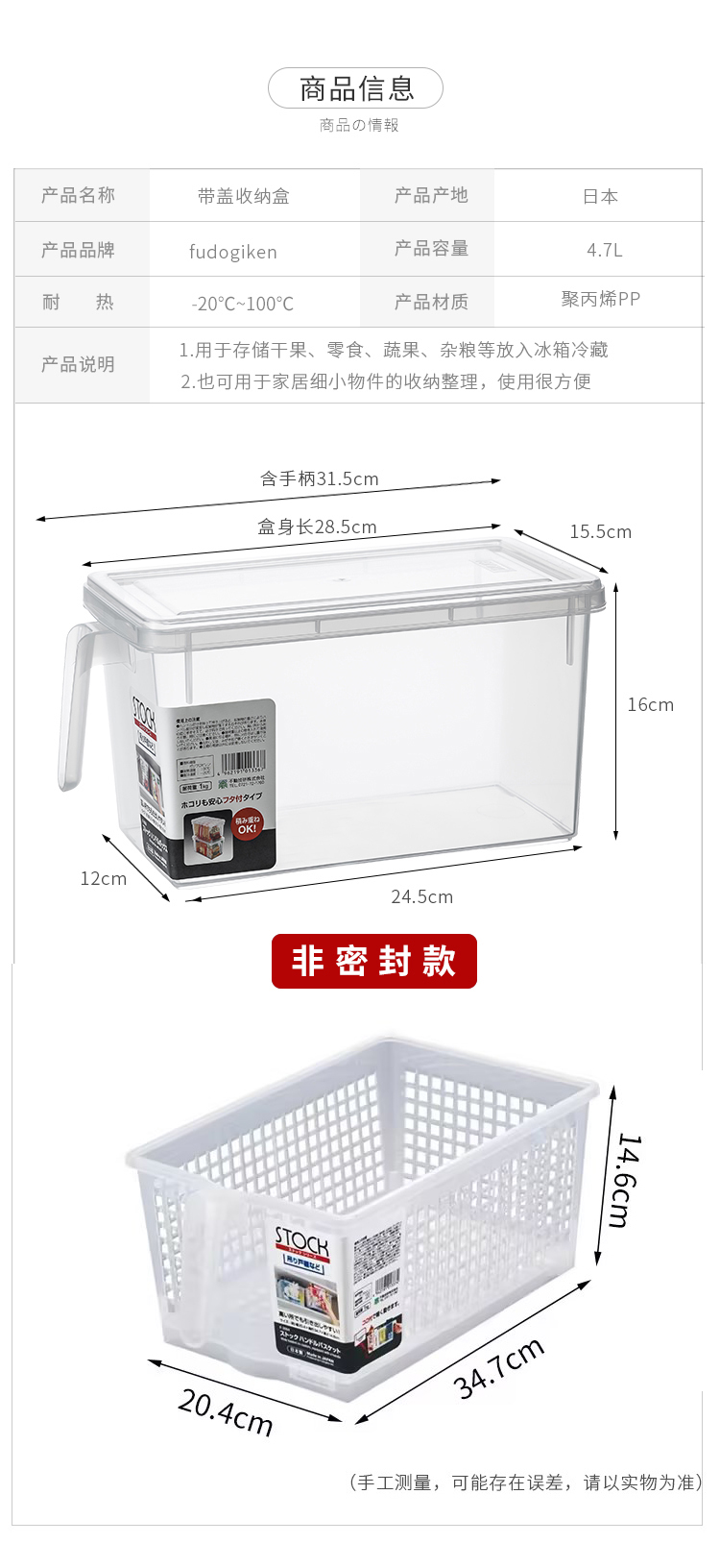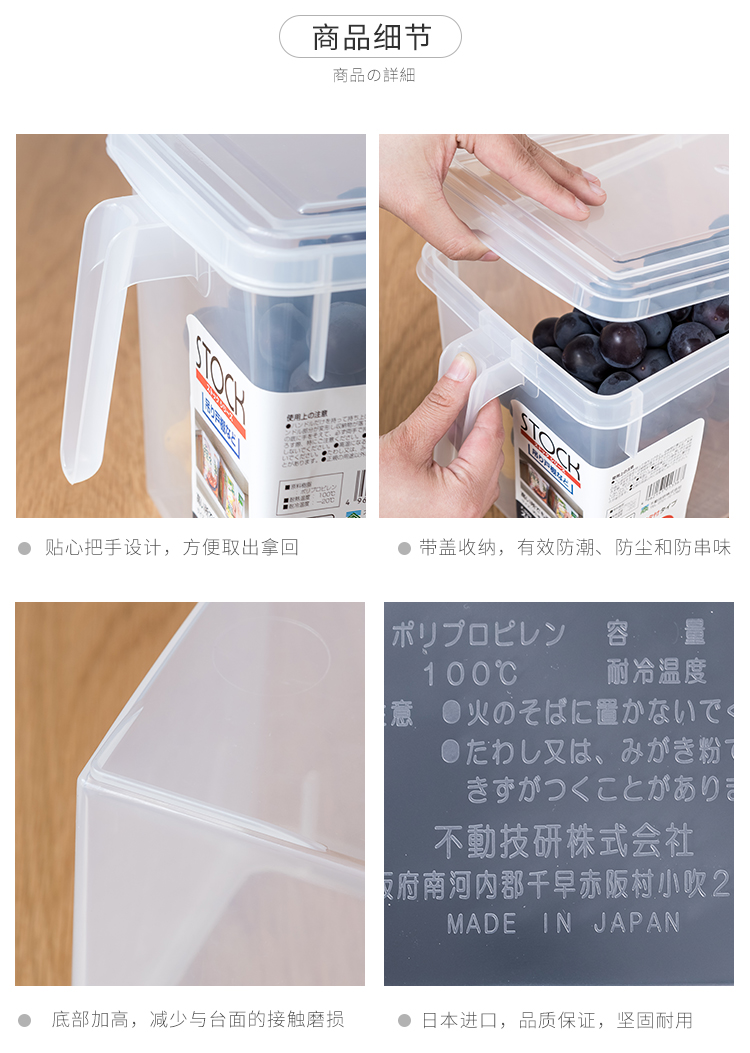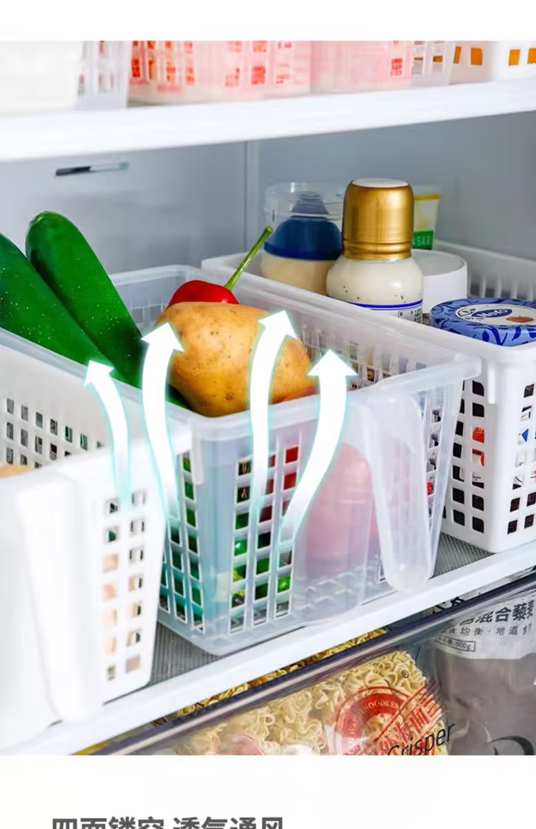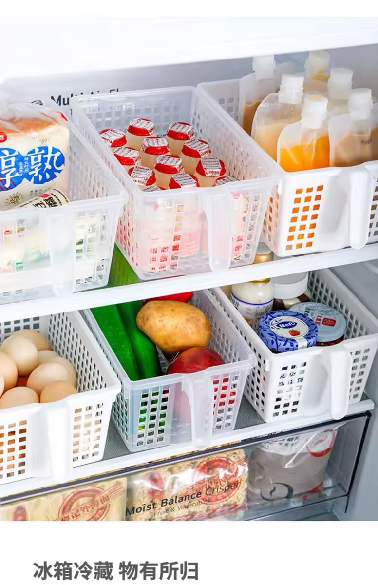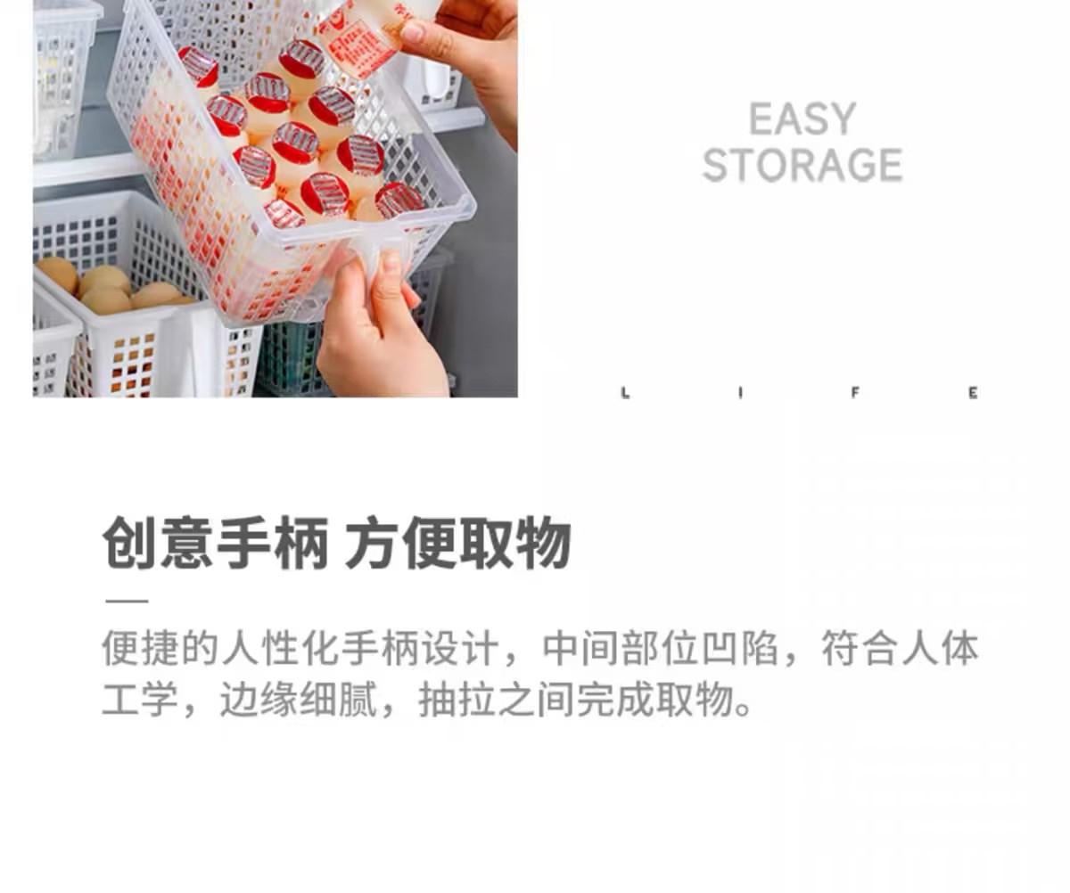 日本进口冰箱收纳盒套装食品级保鲜大号厨房水果蔬菜带手柄储物盒【不支持补差,非质量问题不退不换】S