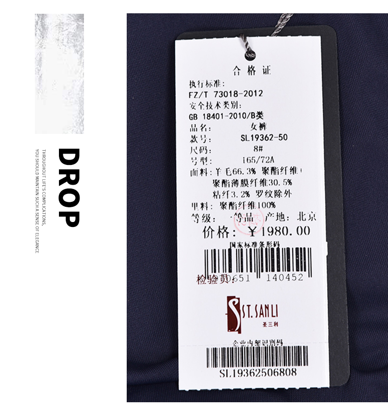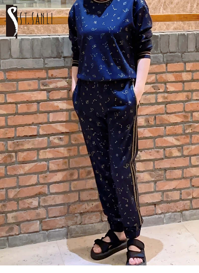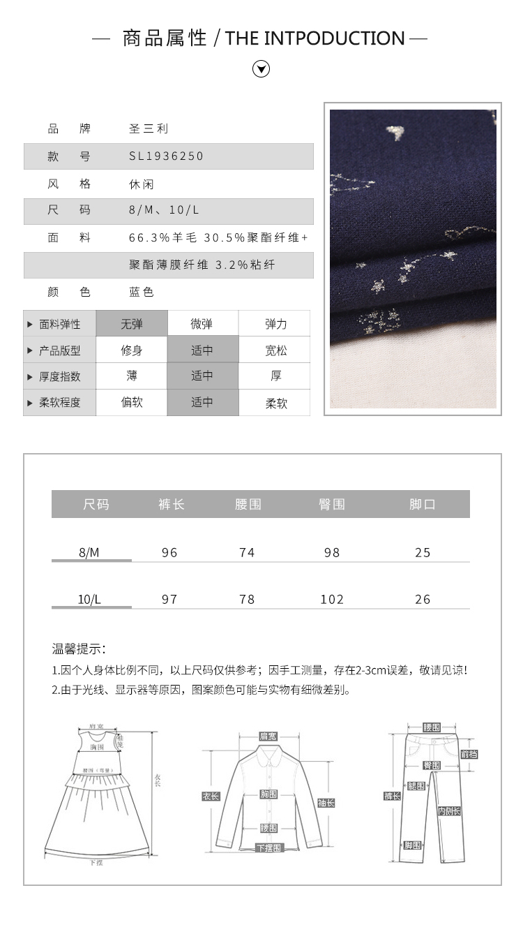 圣三利女装松紧腰休闲束脚裤SL1936250