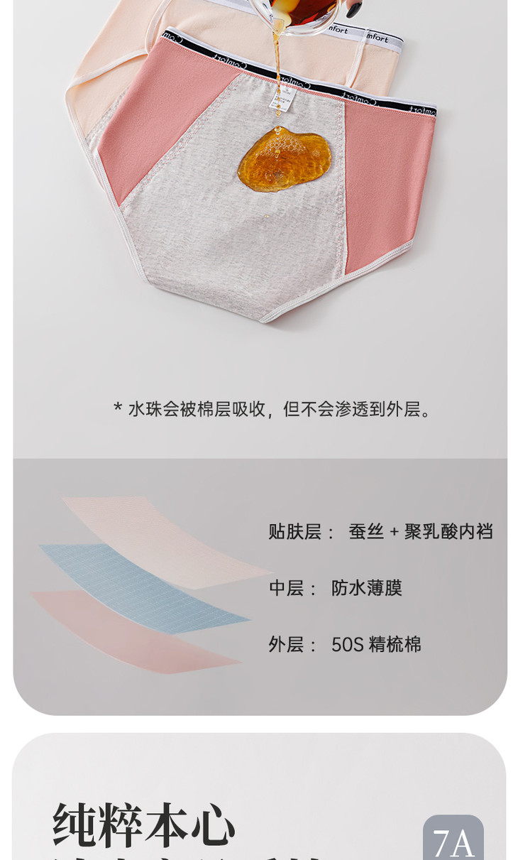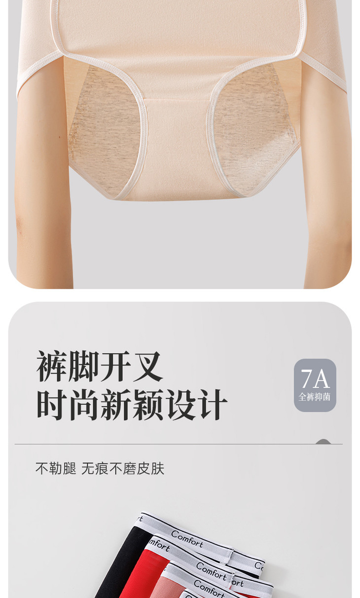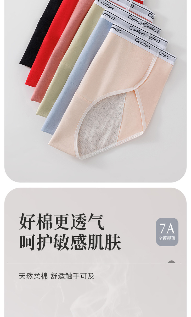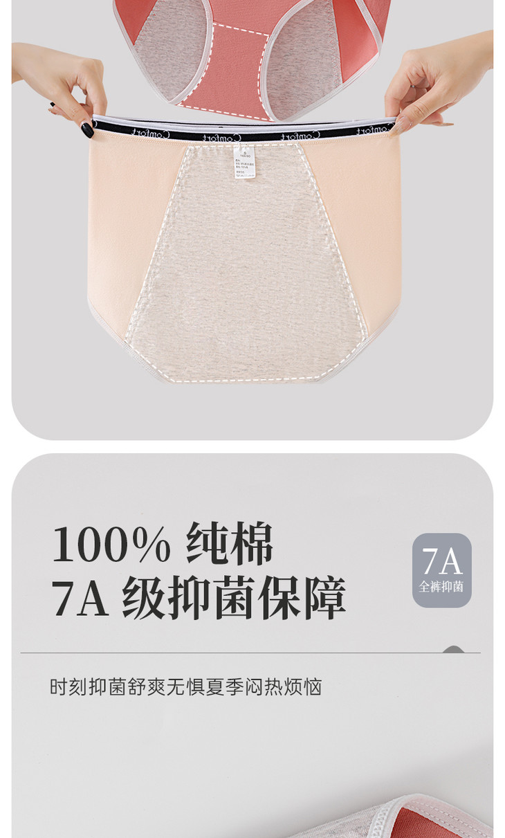 生理期专用内裤3条 前后档加宽加长 防侧漏姨妈裤 月经期安全纯棉内裤 7A抑菌纯棉裆