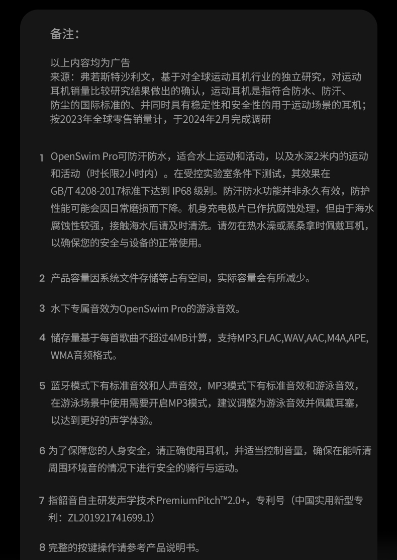 Shokz 韶音 OpenSwim Pro S710 游泳骨传导耳机