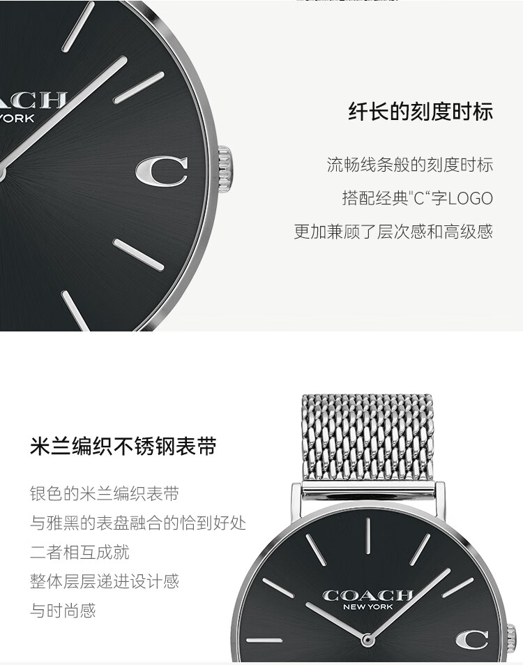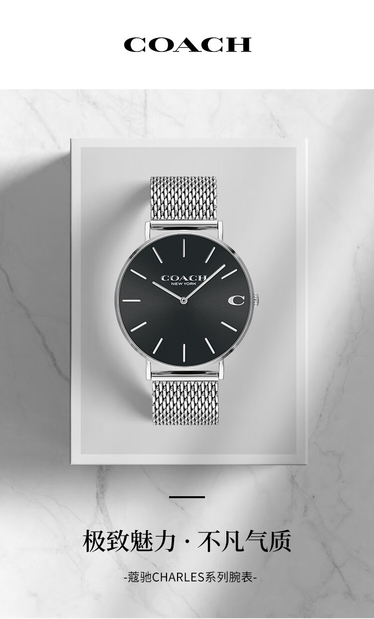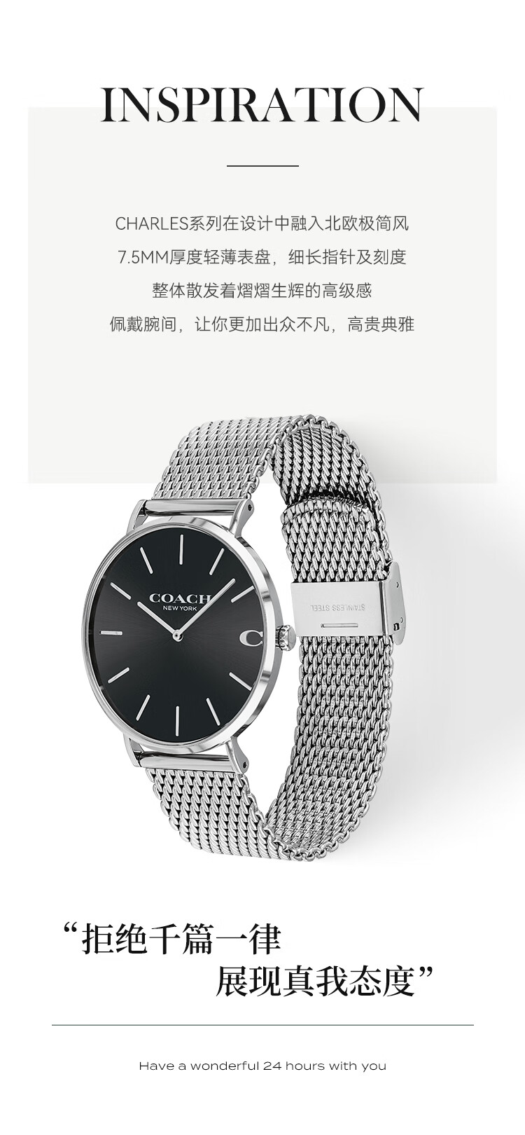 COACH蔻驰 CHARLES查尔斯系列 时尚欧美表41mm 石英防水手表情侣男表