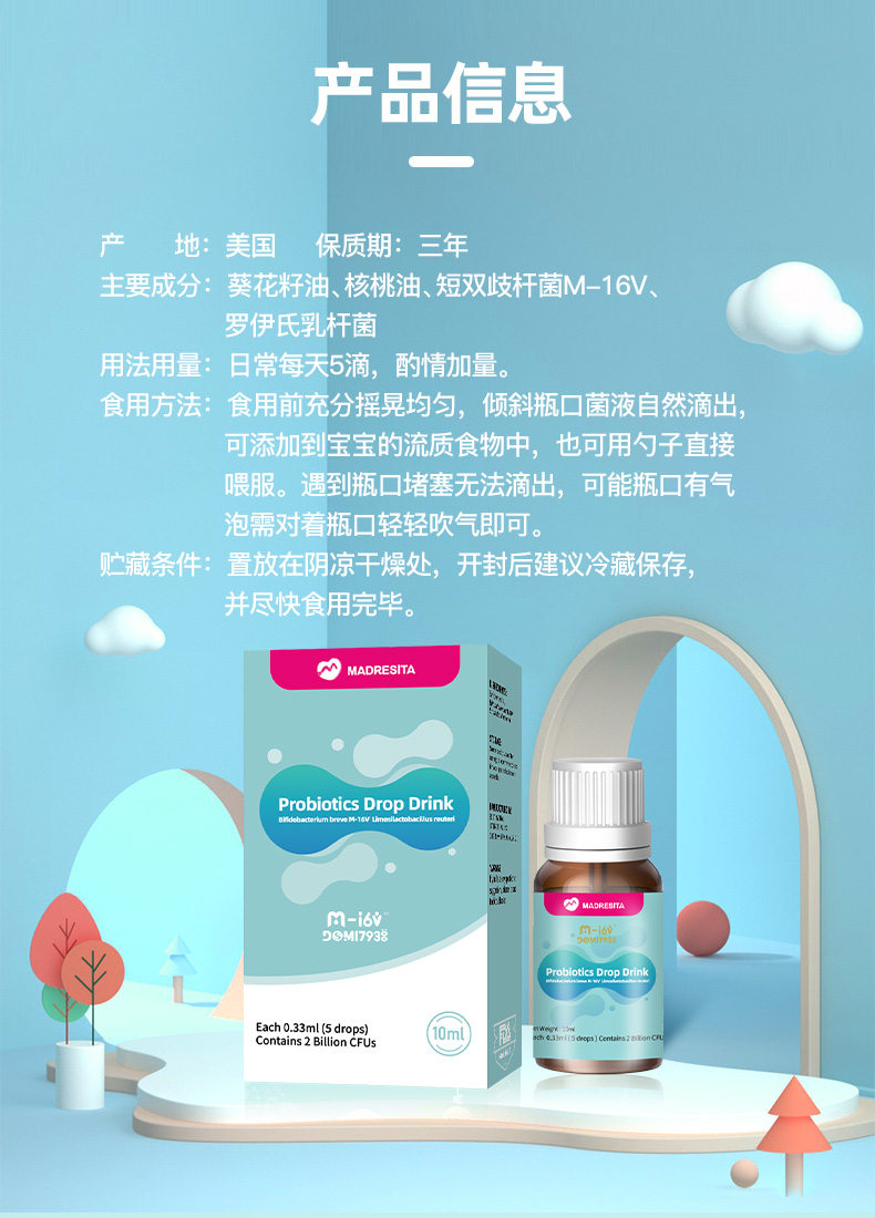 玛西塔倍护复合益生菌滴剂m16v婴幼儿益生菌滴剂10ml