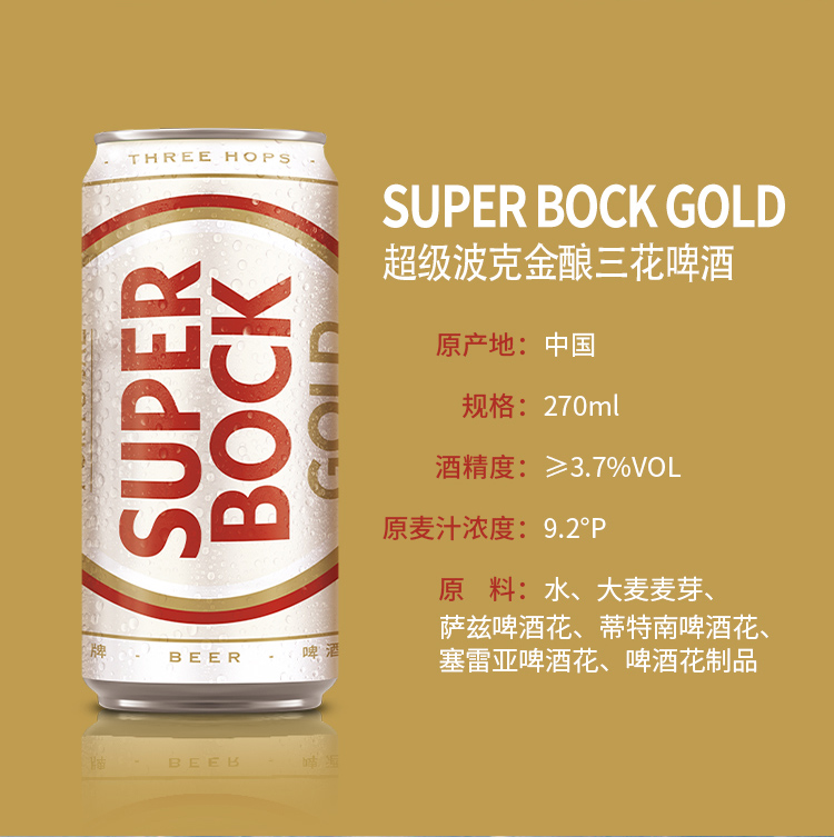 【臻选好酒】超级波克金酿三花啤酒 270mI*12听/件