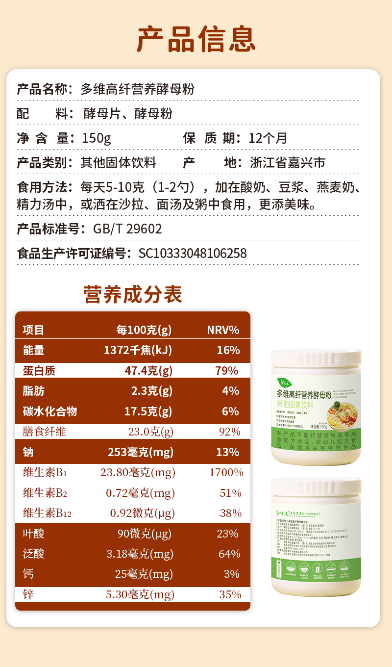 【悦意】多维高纤营养酵母粉150g*1/罐