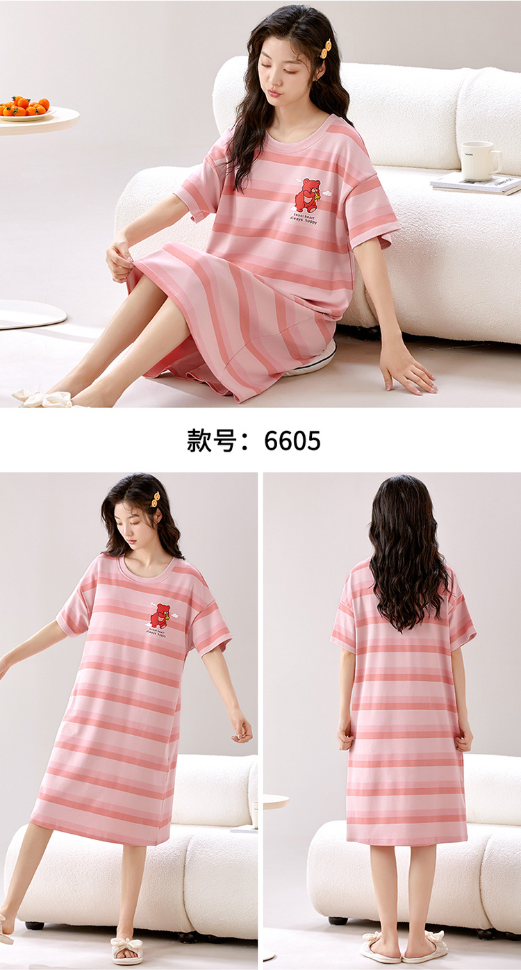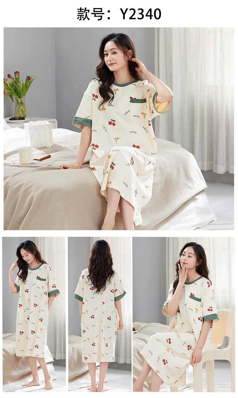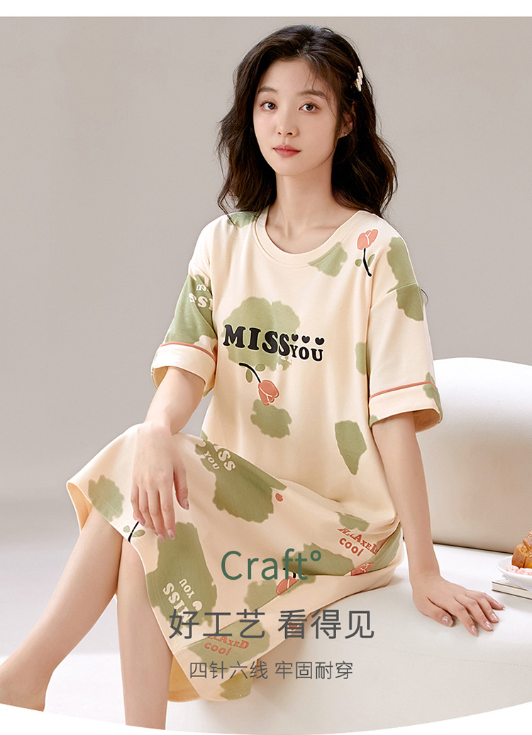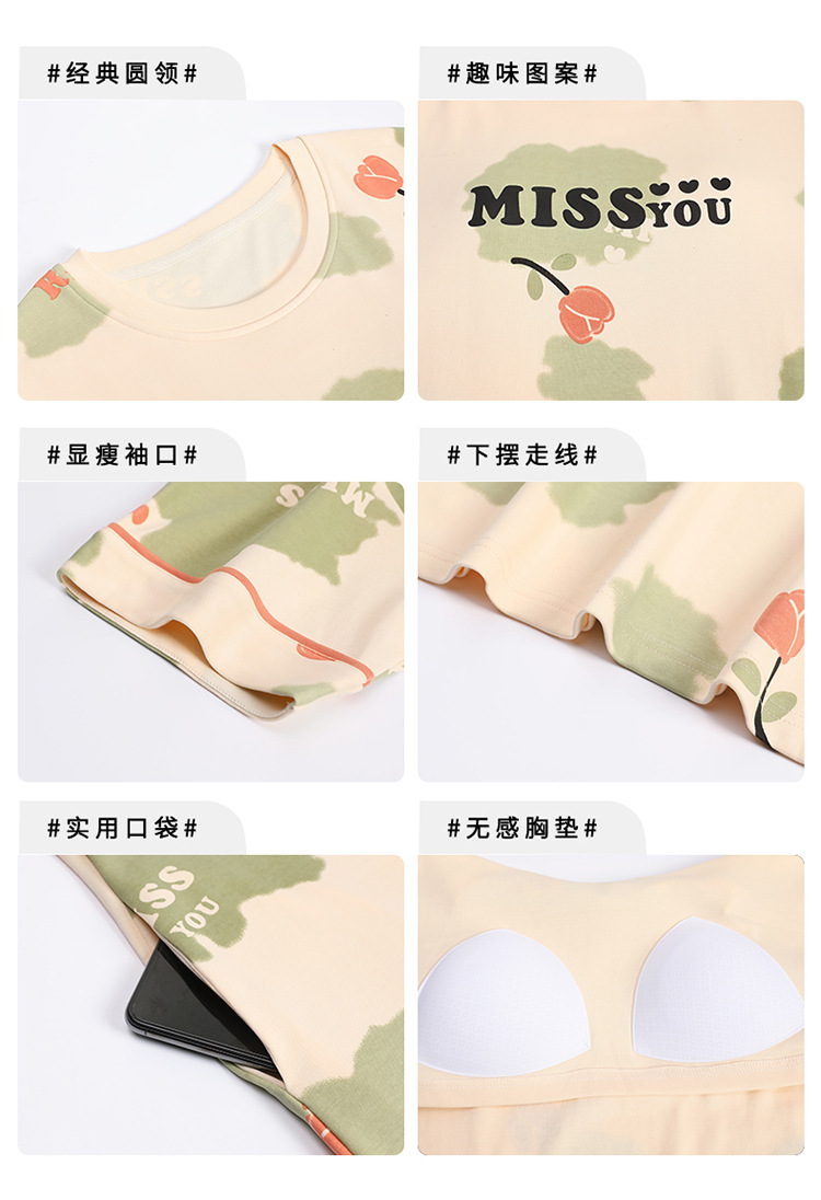 2026年短袖睡裙女夏季薄款棉质带胸垫家居服防凸点可外穿套装新款新品