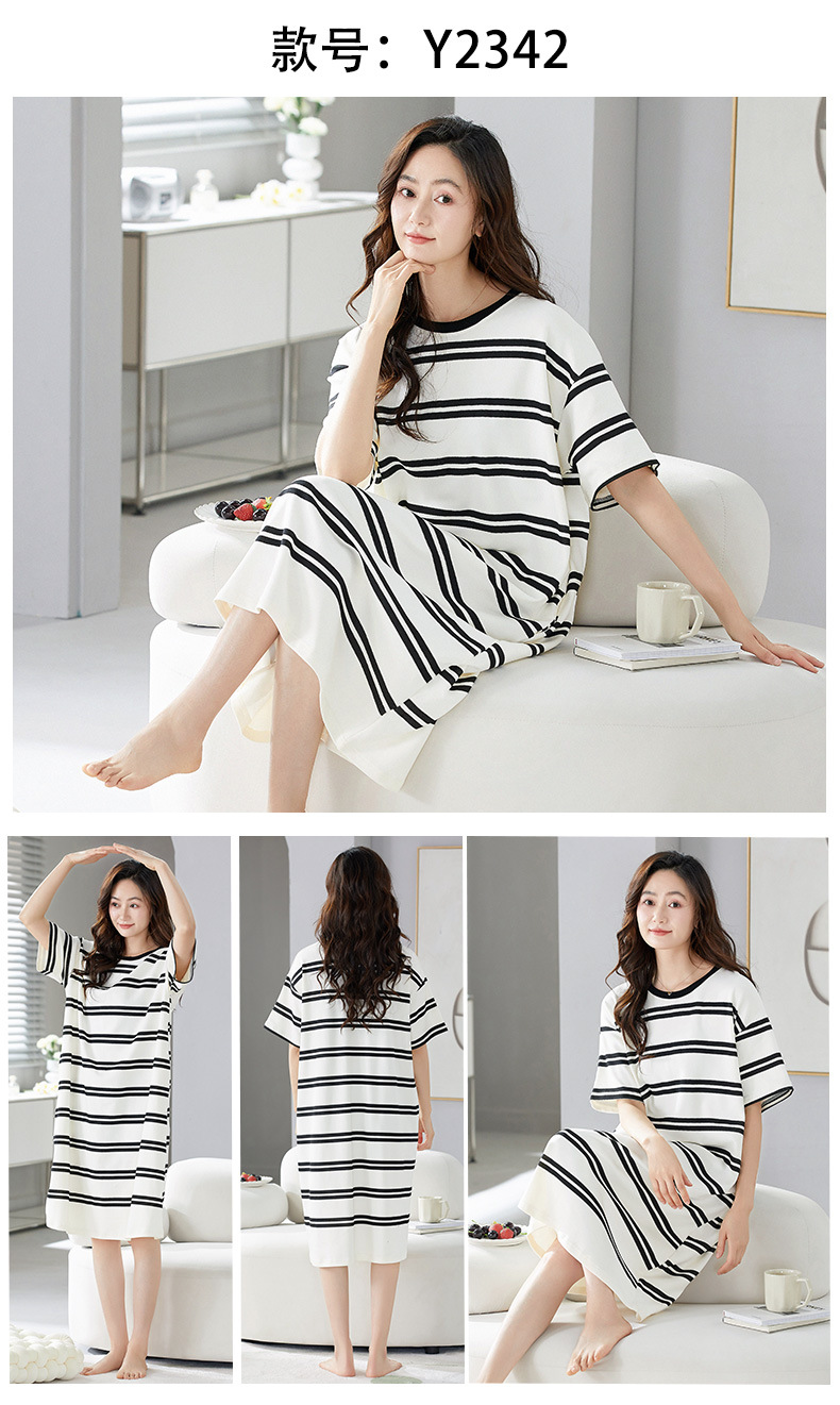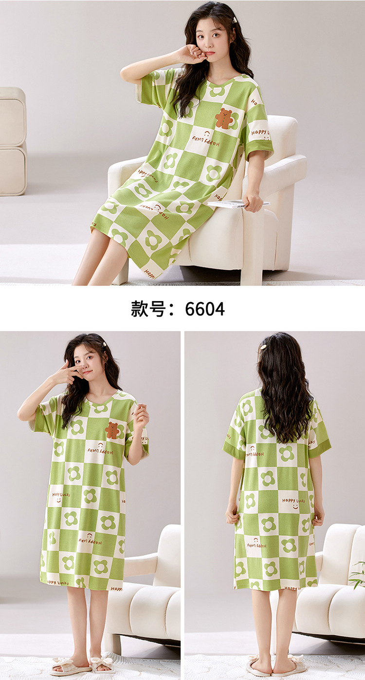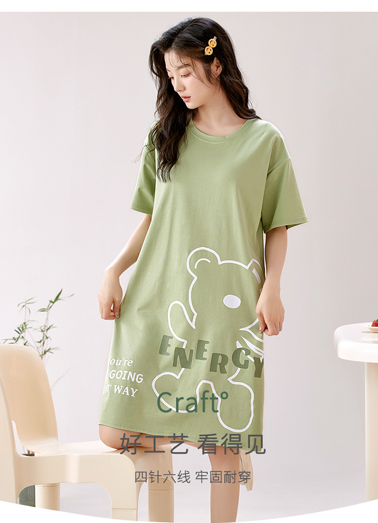 2026年短袖睡裙女夏季薄款棉质带胸垫家居服防凸点可外穿套装新款新品