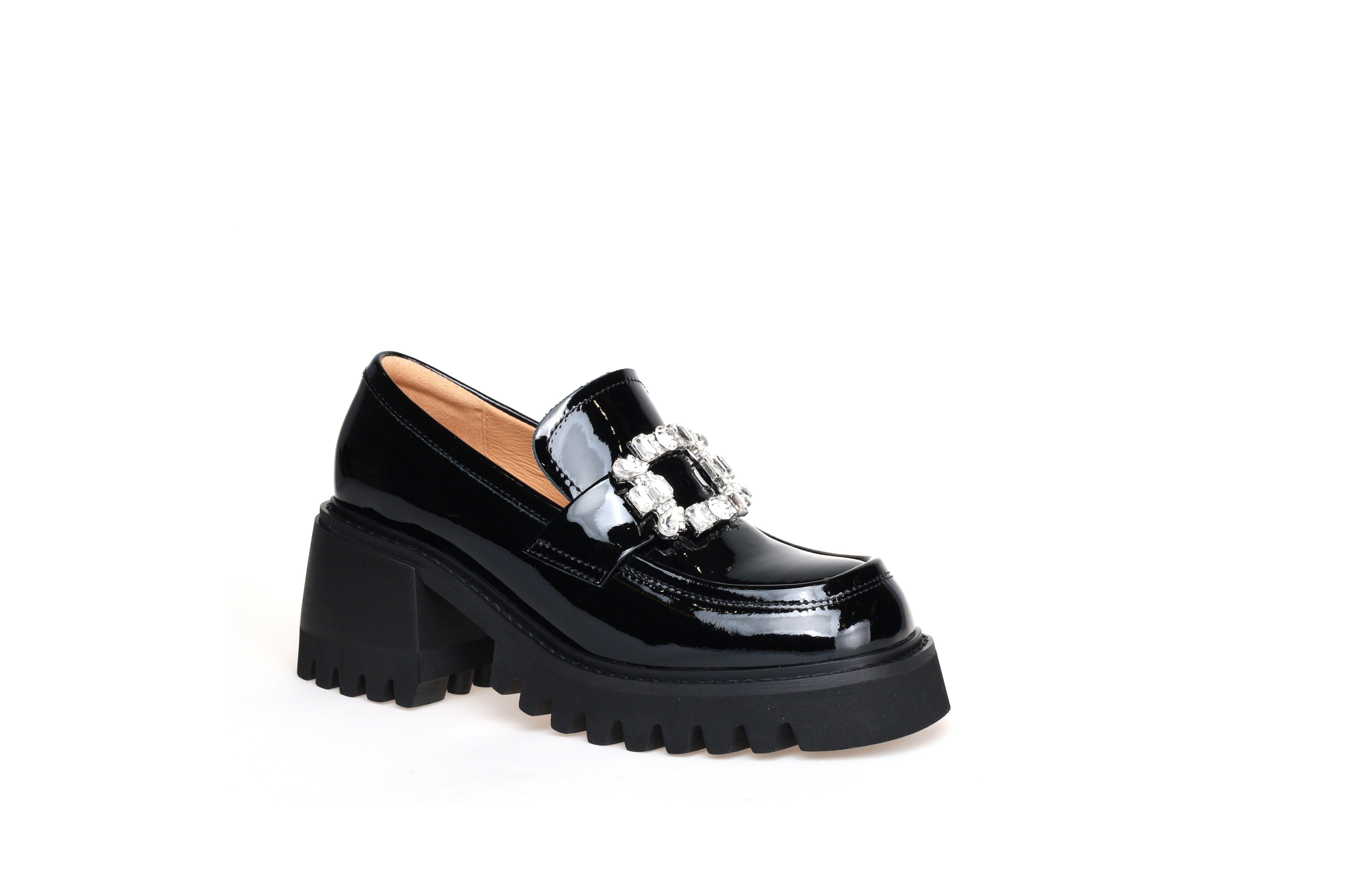 豪麟名鞋奥莱迪嘉女鞋乐福鞋牛移膜革DJHJA42WS008黑色 原价1660元
