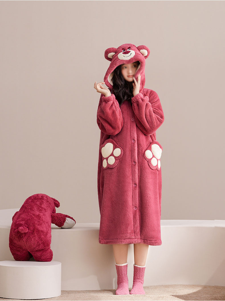 卡通玉桂狗草莓熊睡袍女2025秋冬网红珊瑚绒睡衣外穿加厚暖暖套装学生睡衣
