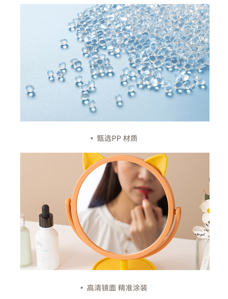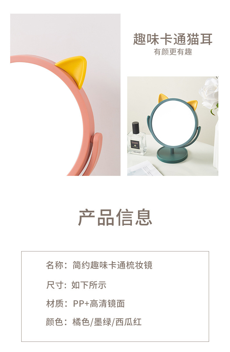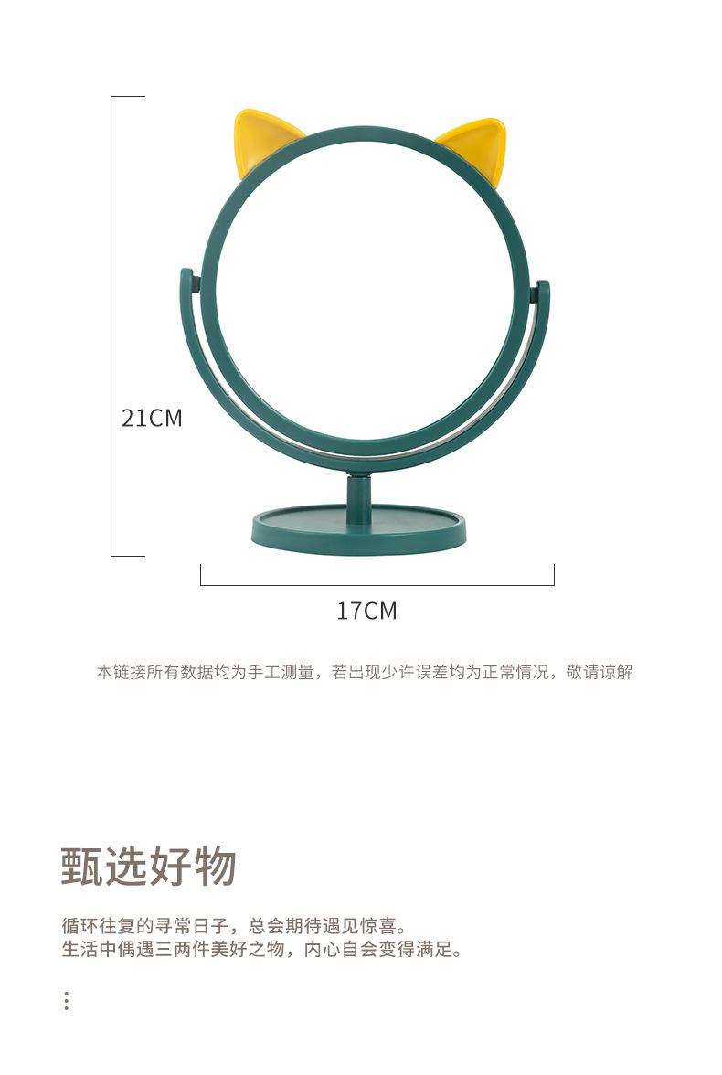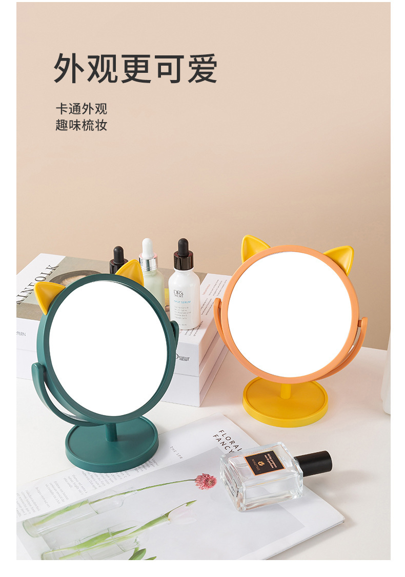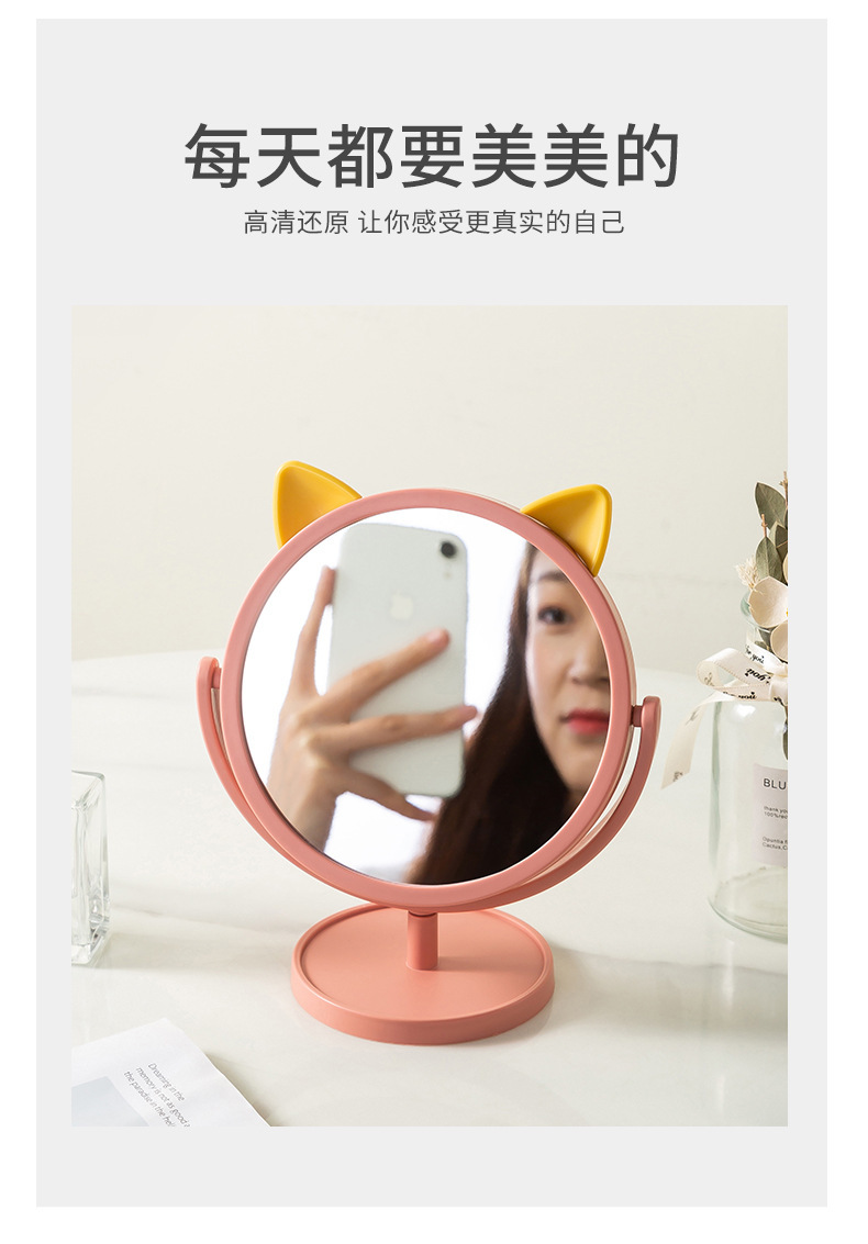 新款台式猫耳朵化妆镜子伴你度过每一个美丽时刻。不仅可旋转,也非常适合放在桌面上,能够为你提供清晰的镜面和可爱的涂鸦风格。如同是从宿舍的窗户望出去,看到美好分外清晰!
