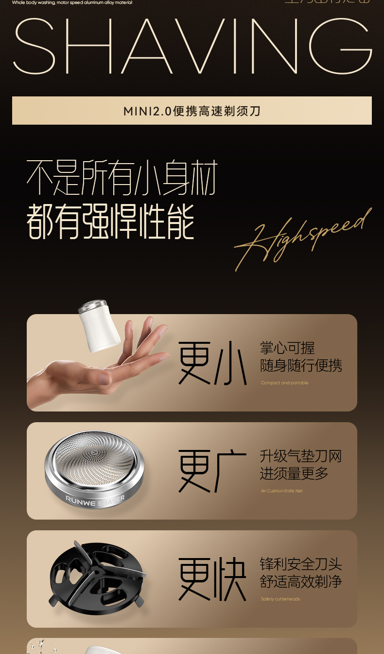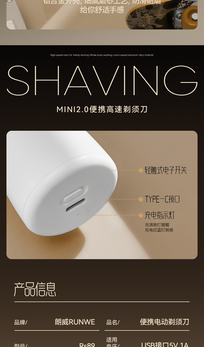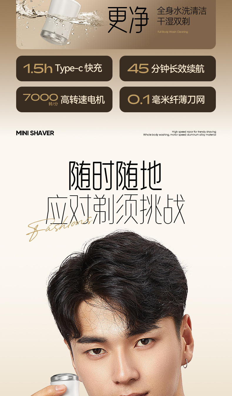 「MINI便携款!可水洗」朗威全身水洗剃须刀 居家日用小钢炮迷你电动车载旅行刮胡刀单头胡须刀
