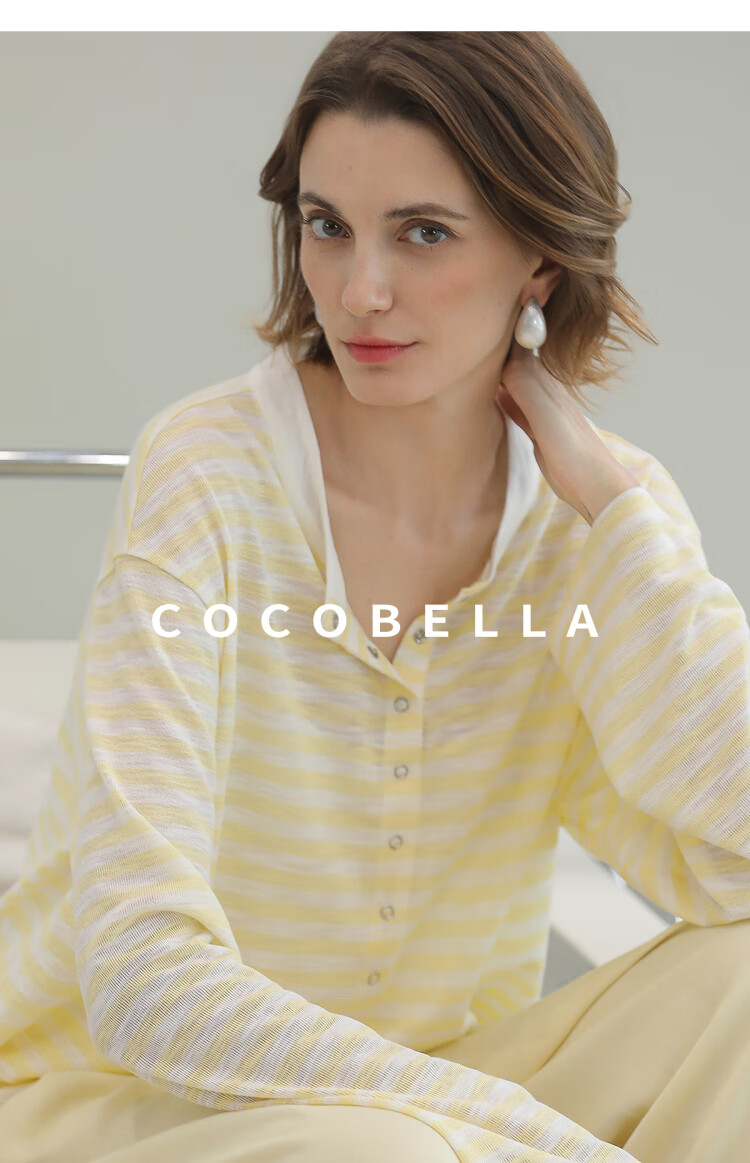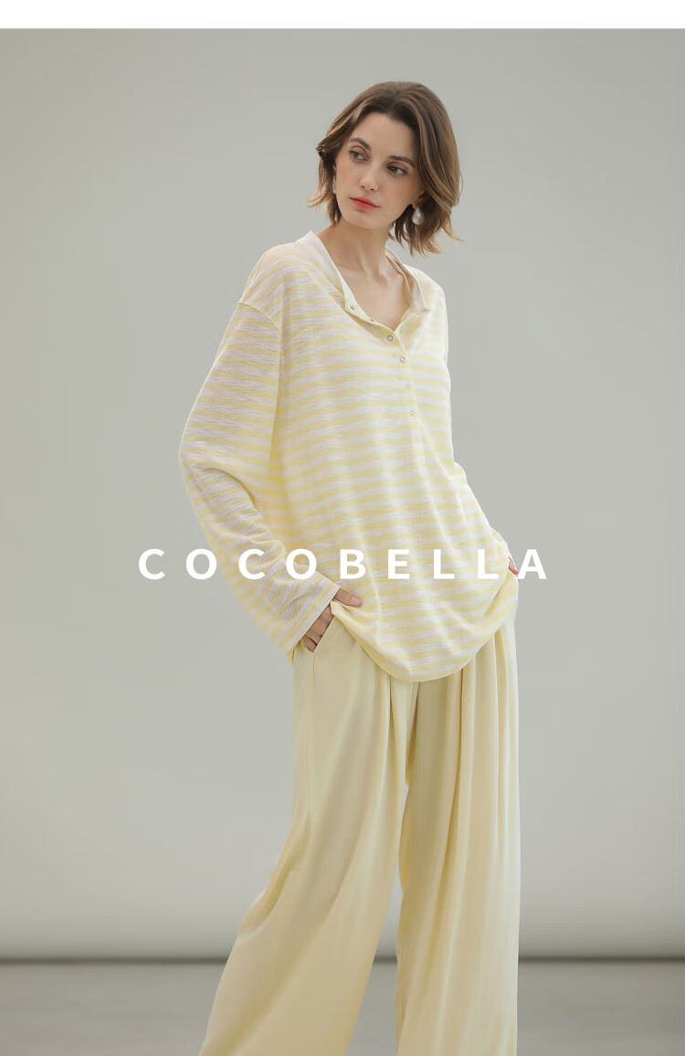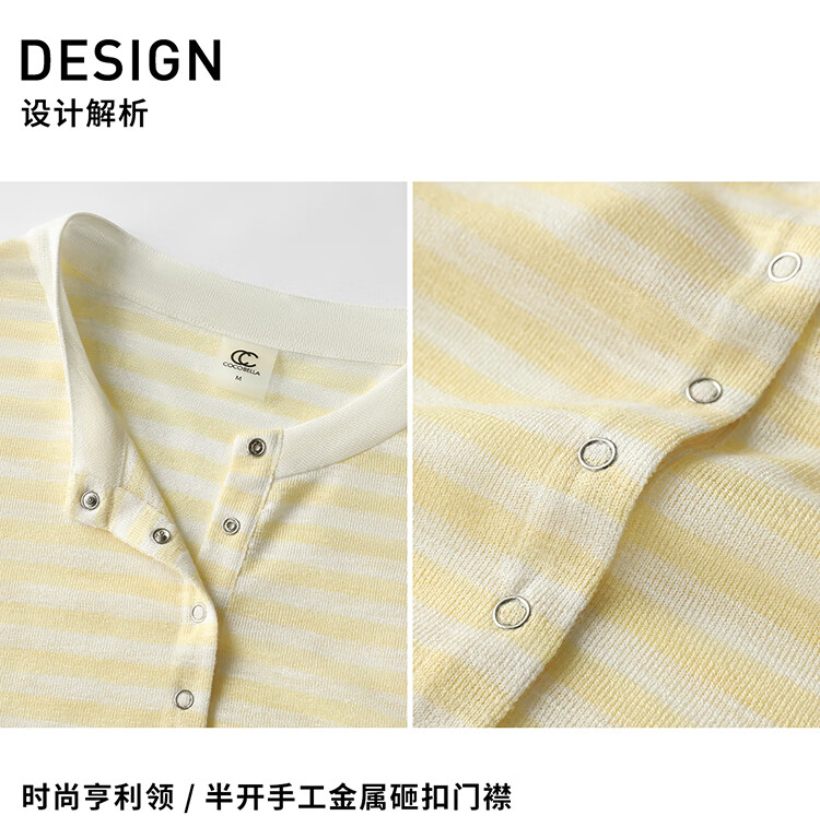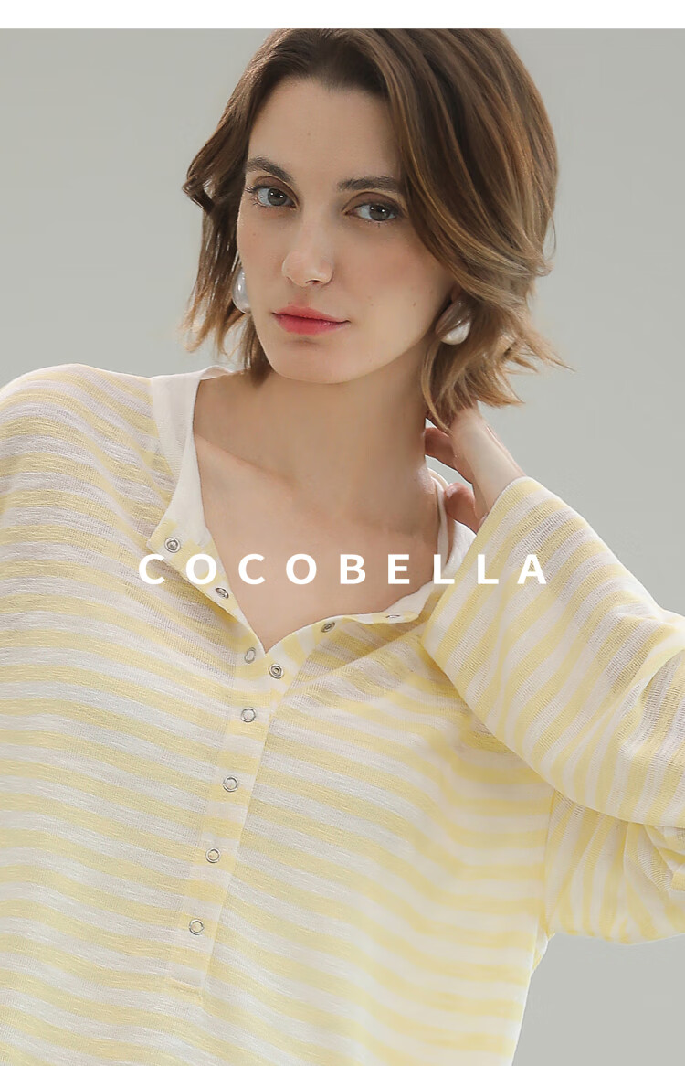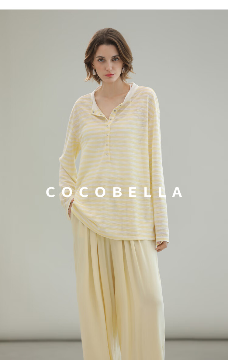 COCOBELLA慵懒休闲亨利领条纹针织衫女微透长袖T恤TS7058