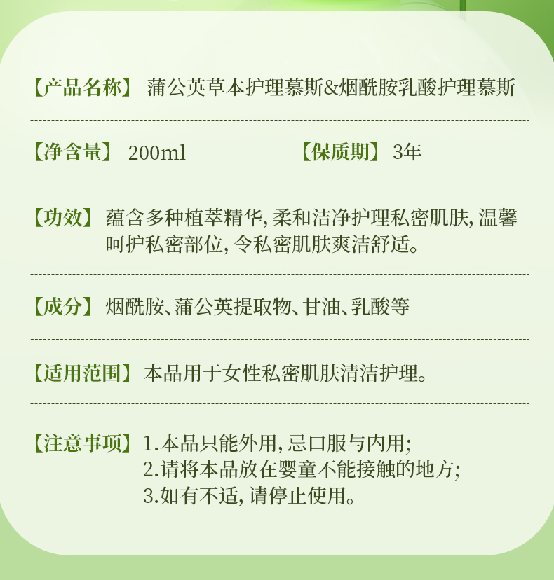 【金币兑换】美可奇蒲公英草本烟酰胺乳酸护理慕斯男女性私处护留香抑菌官方