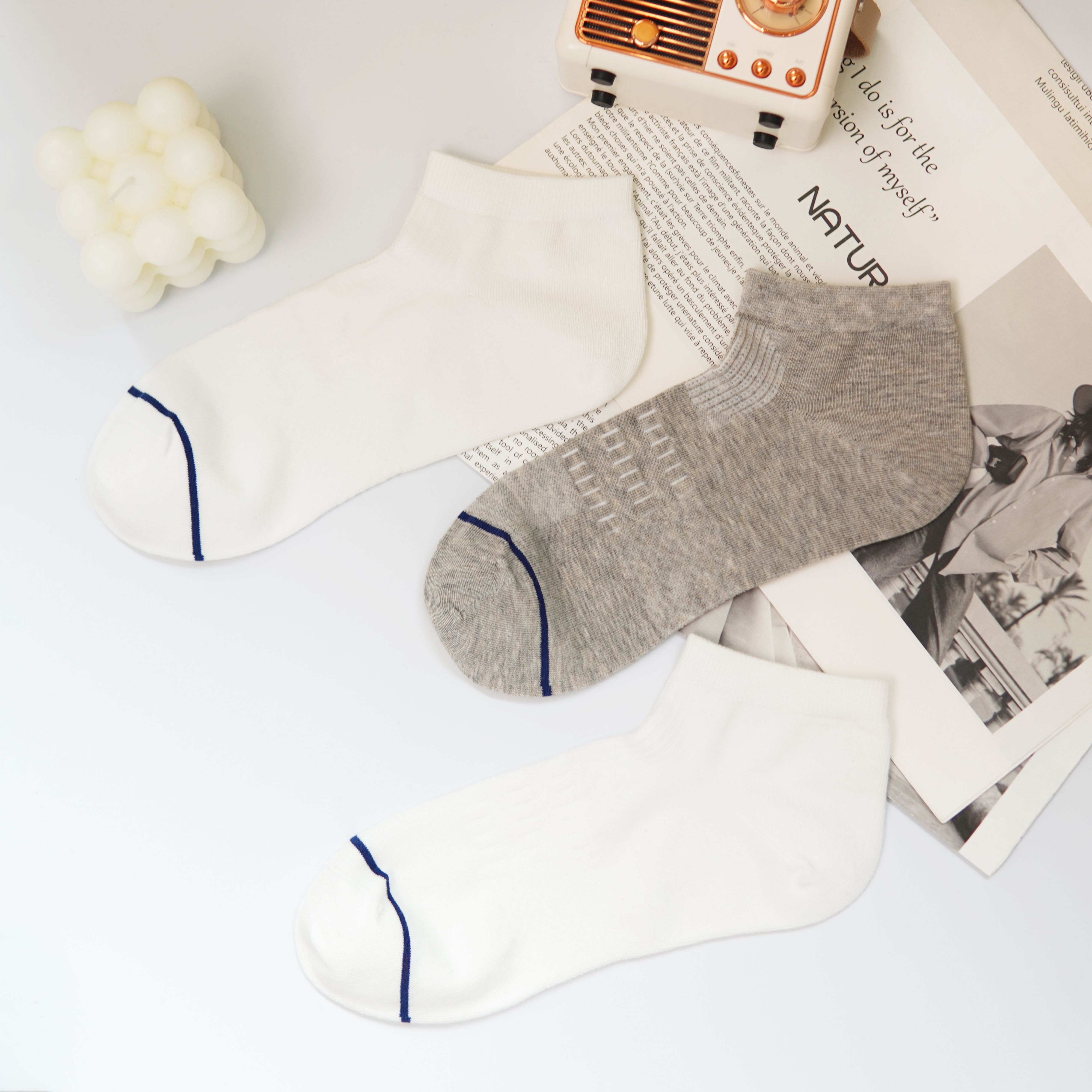 【2双装】【6双6折】男士春夏新款直角船袜网面短筒袜海净丝壳聚糖纤维抗菌男袜【2611301】