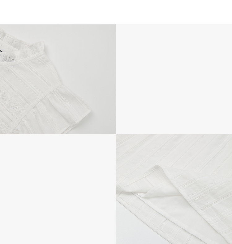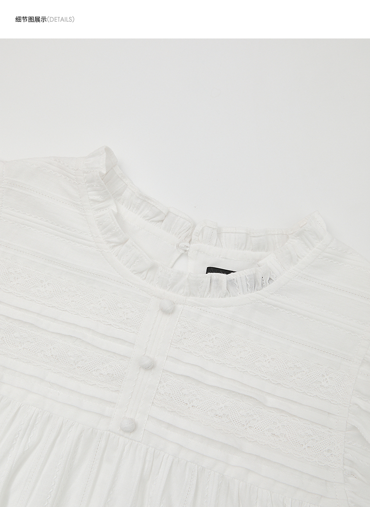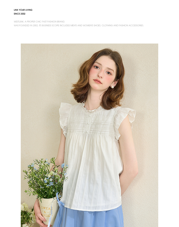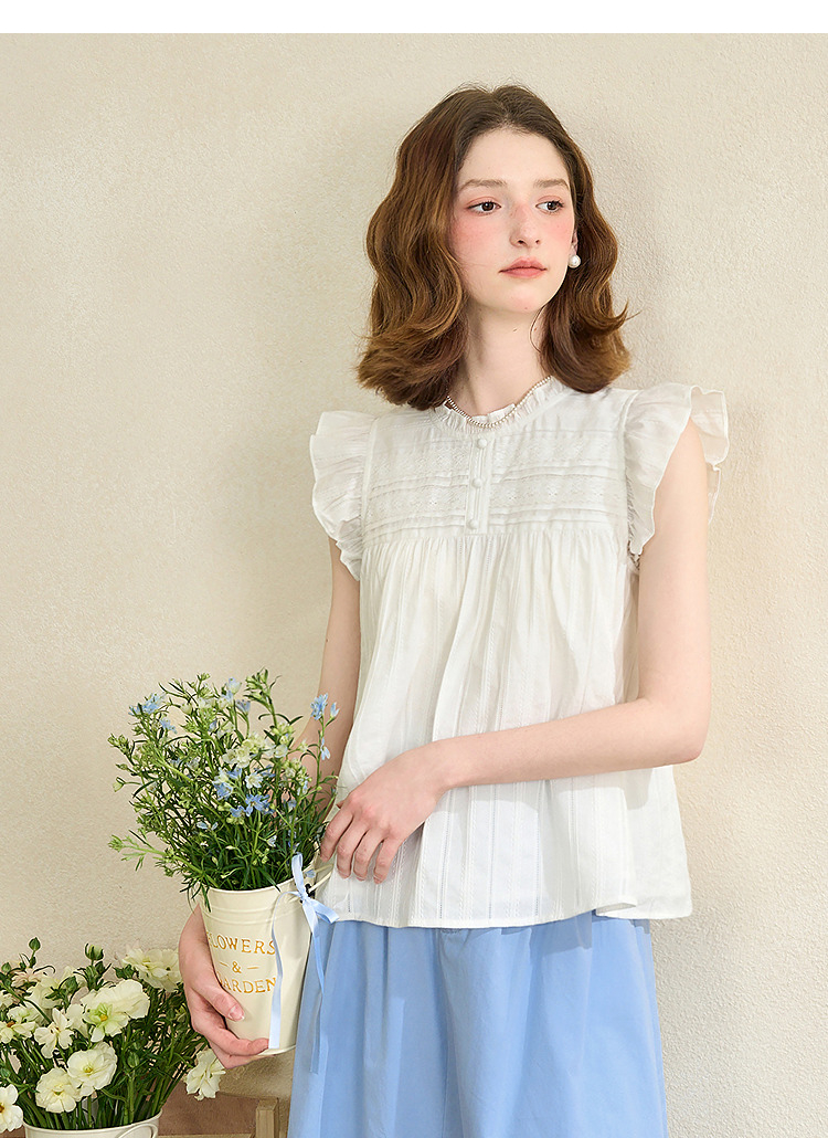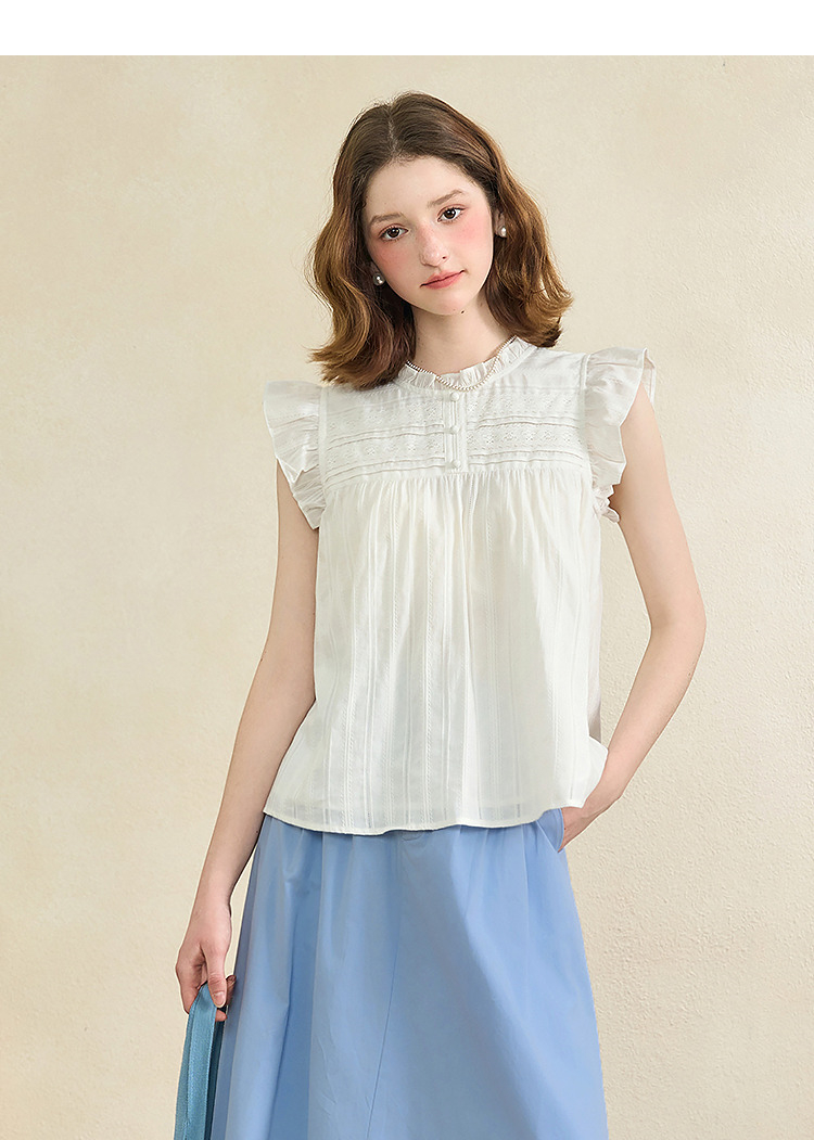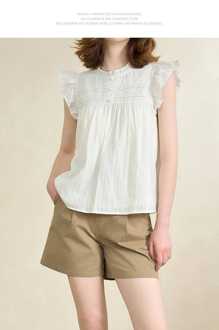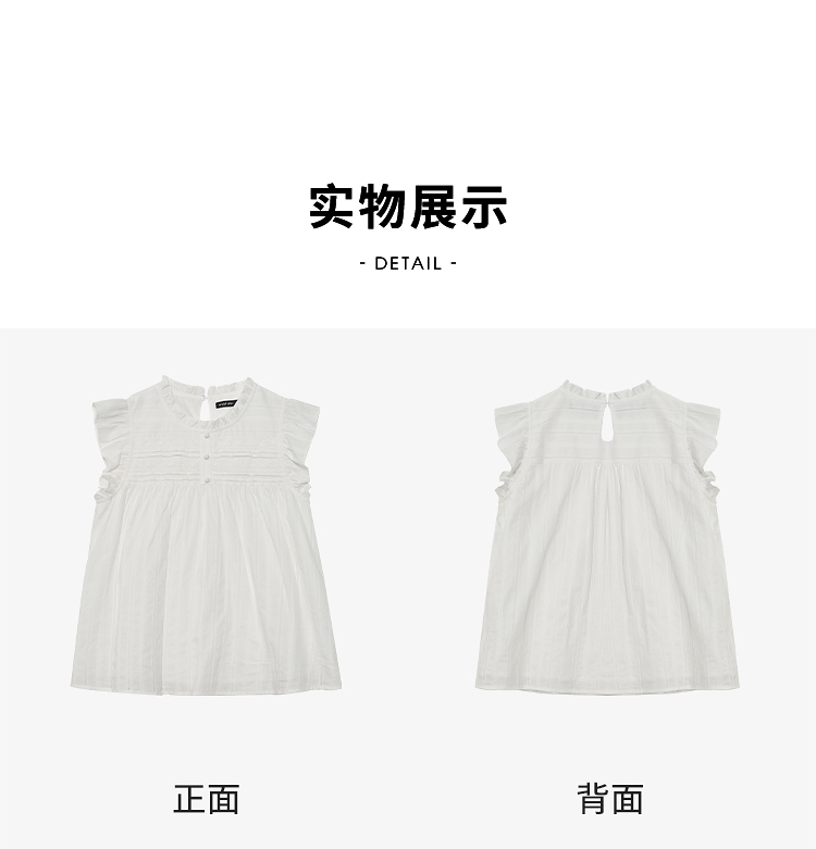 【纯棉】甜美木耳边飞飞袖衬衫女夏季拼接面料衬衣V1250684